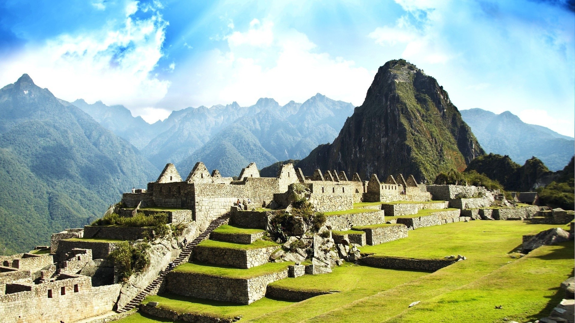 Grande bellissimo castello sulla montagna su uno sfondo di cielo rosa-blu al tramonto