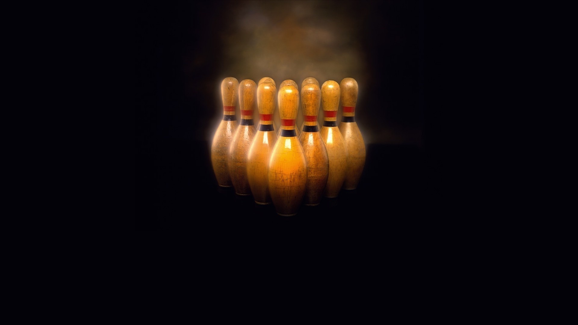 Bowling. Birilli. Sfondo scuro. Sport. Strike