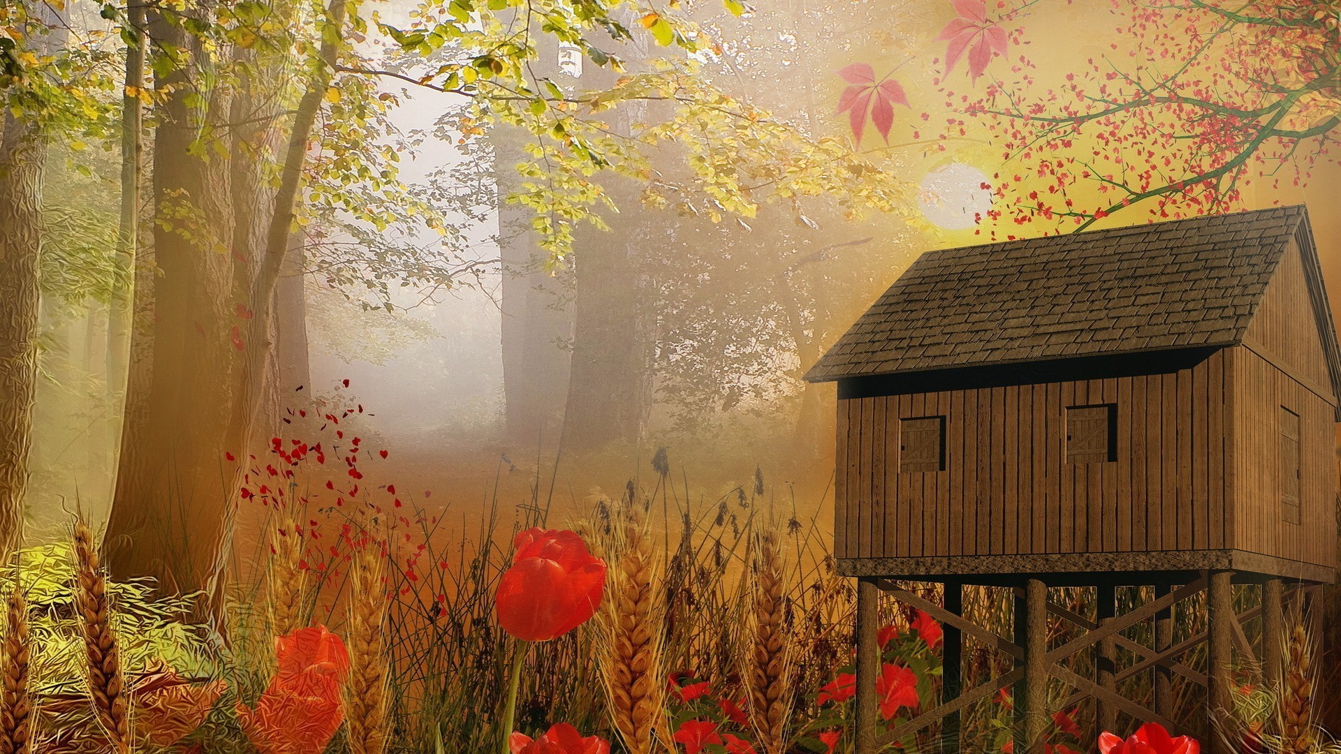 Struttura legnosa su uno sfondo di verde bosco. Sfondo astratto, natura