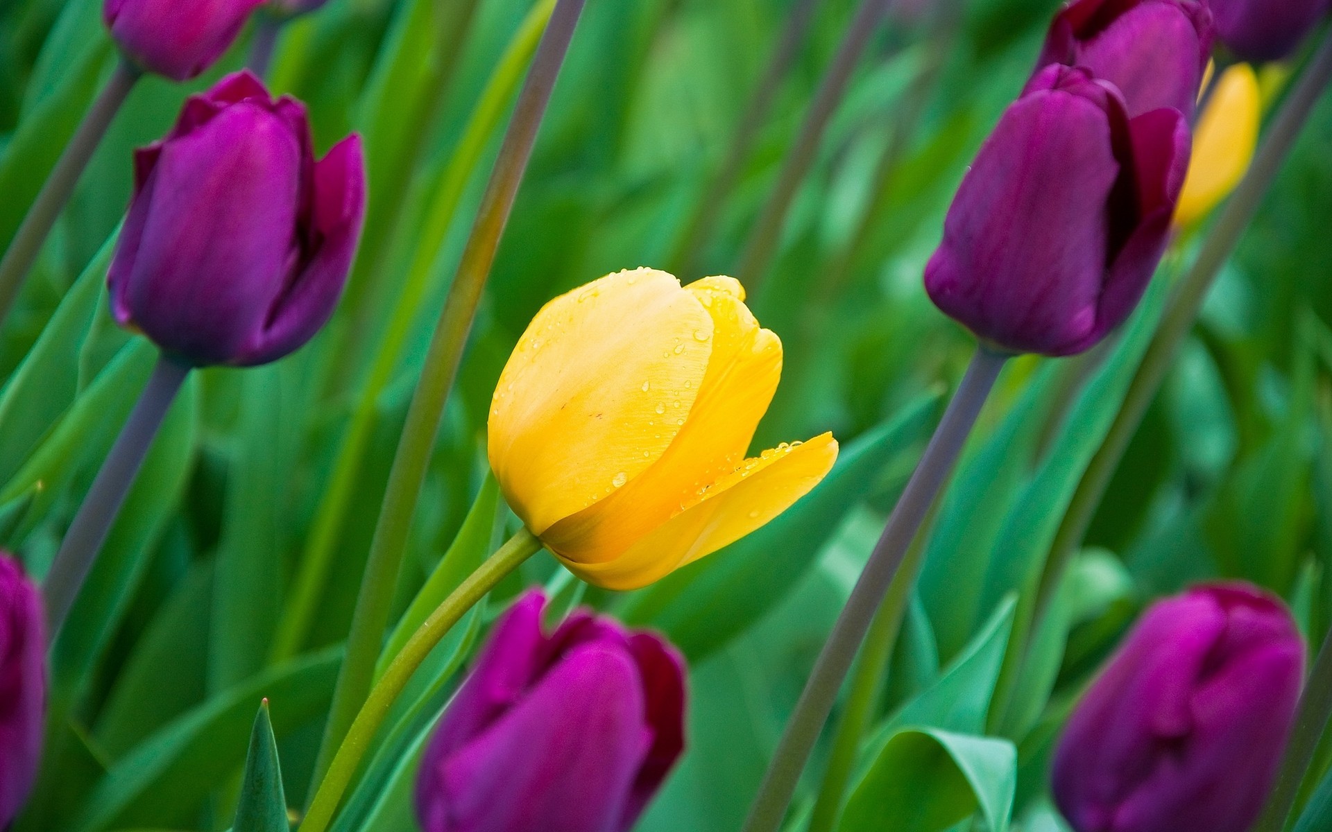 Tulipani multicolori su uno sfondo di verde succoso