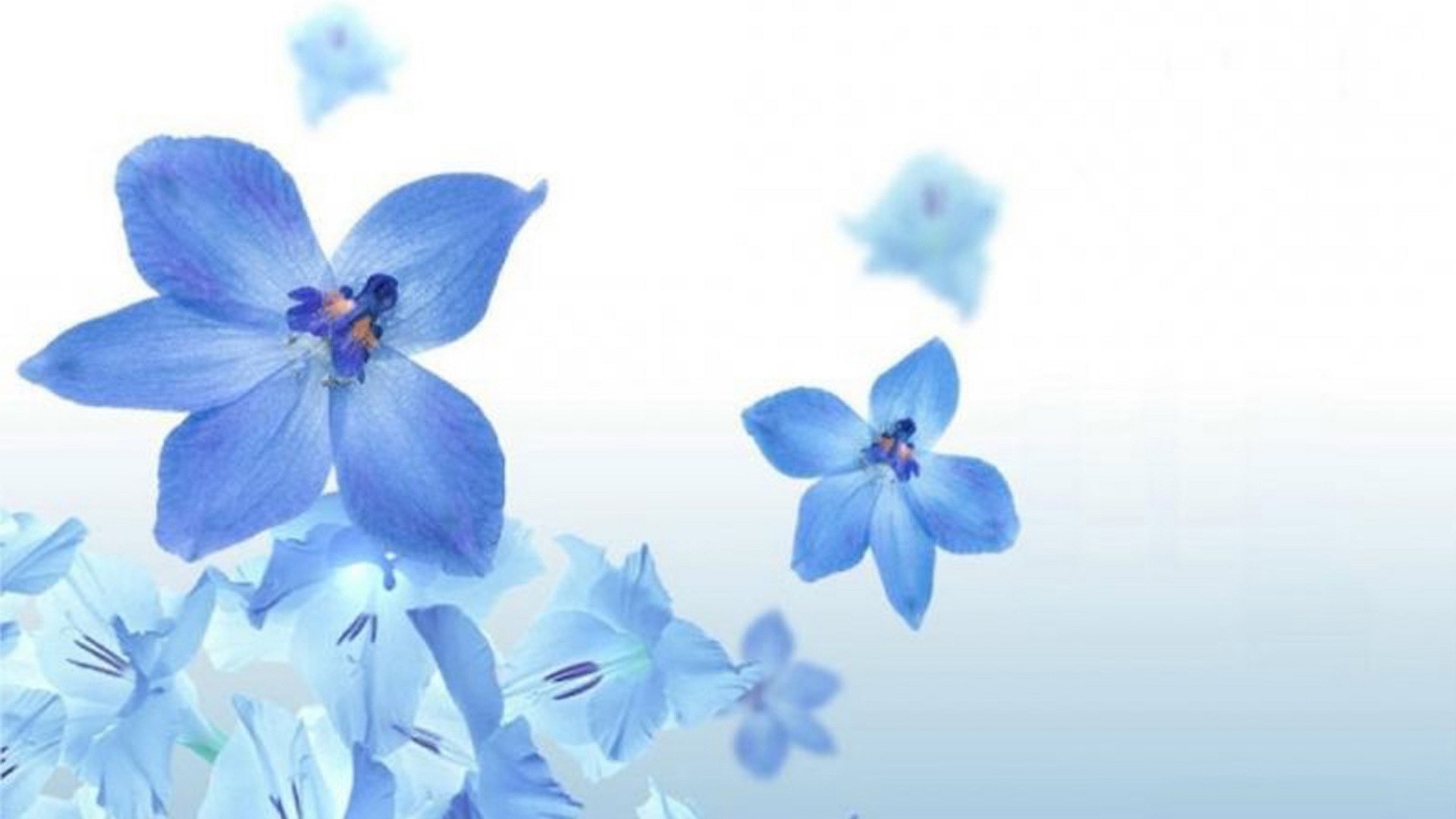 Cinque foglie blu su sfondo bianco