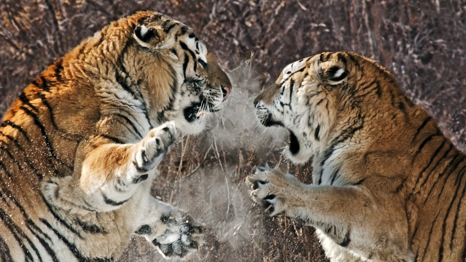 Tre cuccioli di tigre che guardano da un luogo appartato