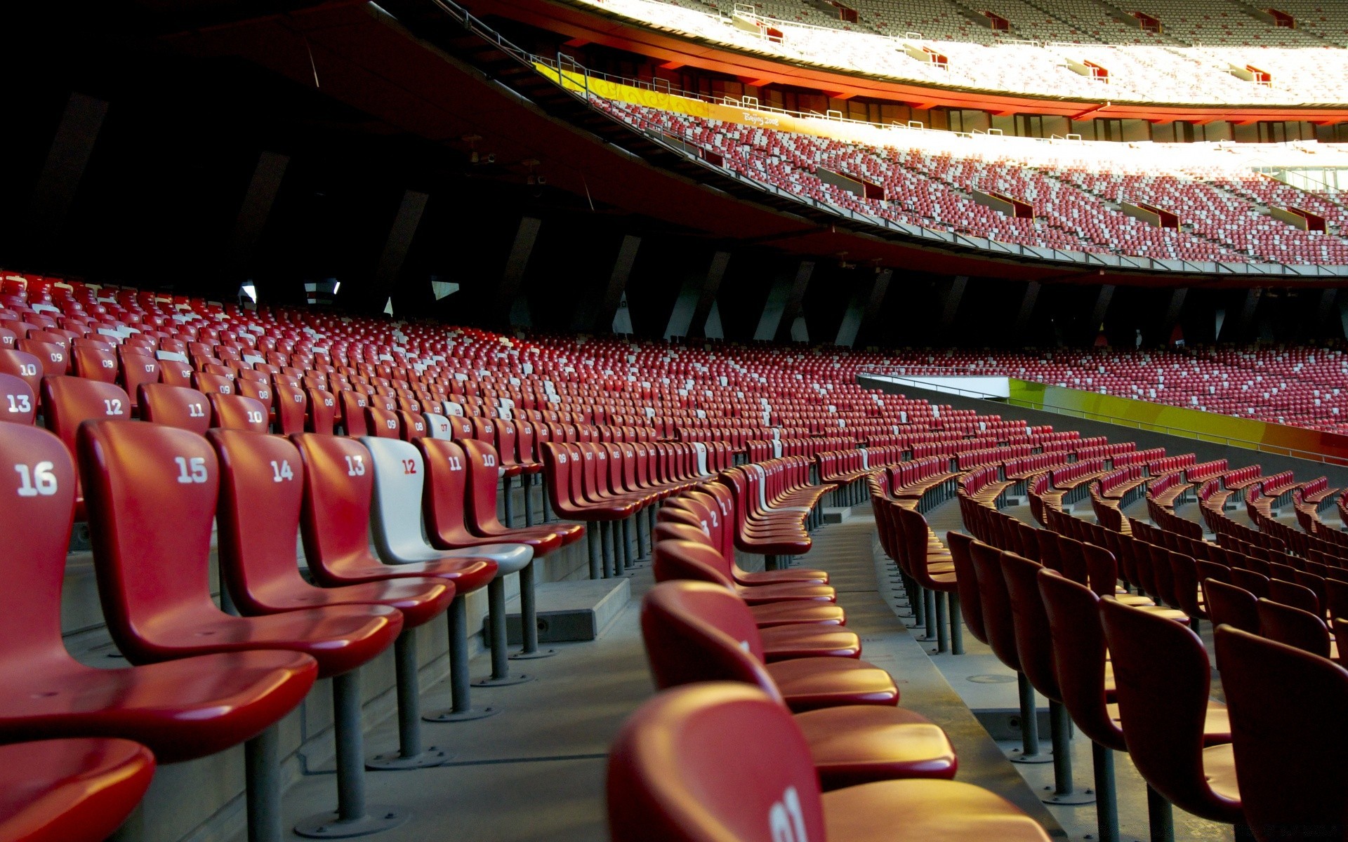 Stadio vuoto, file di posti a sedere