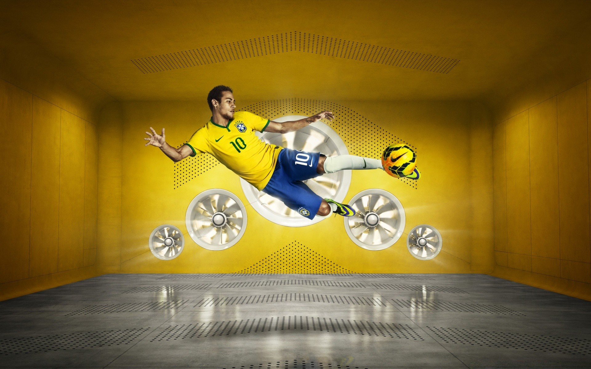 Un calciatore felice in esecuzione su sfondo sfocato dal movimento