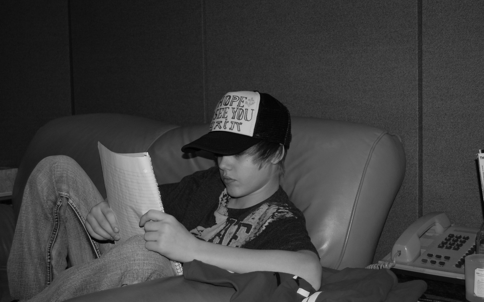 Foto in bianco e nero del cantante sul divano