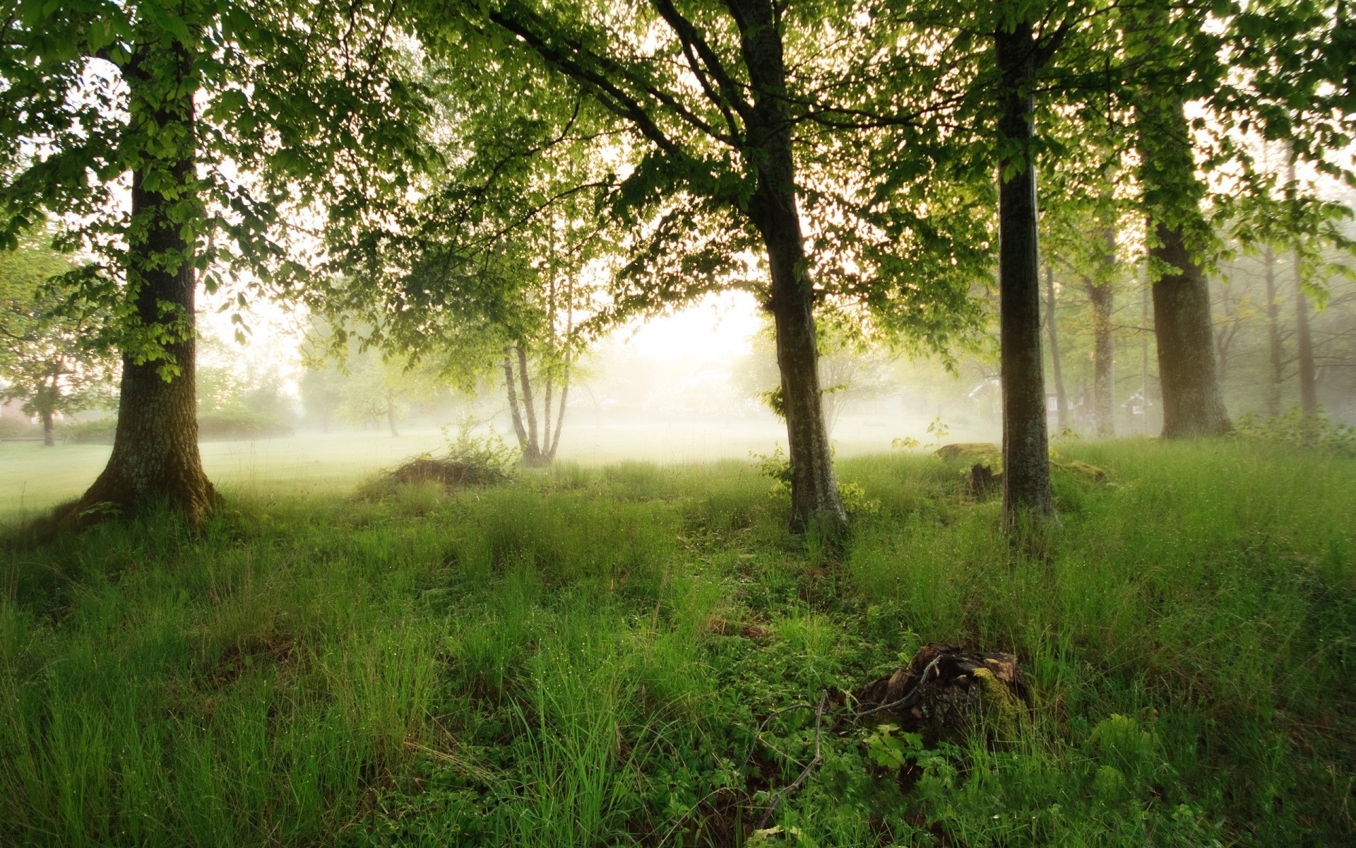 Raggi di sole attraverso gli alberi nella foresta