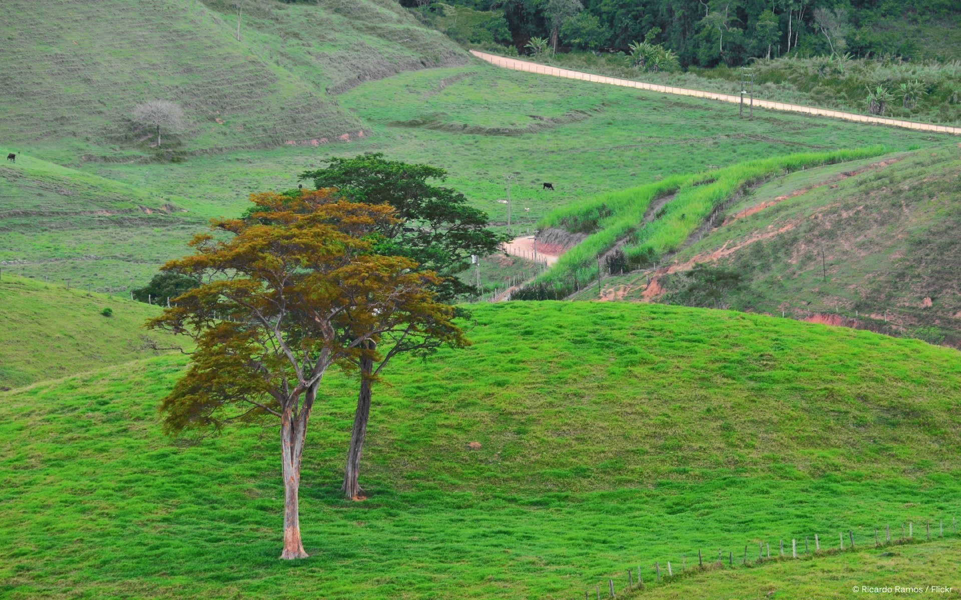 Paesaggio nebbioso e misterioso con campi e sole mite