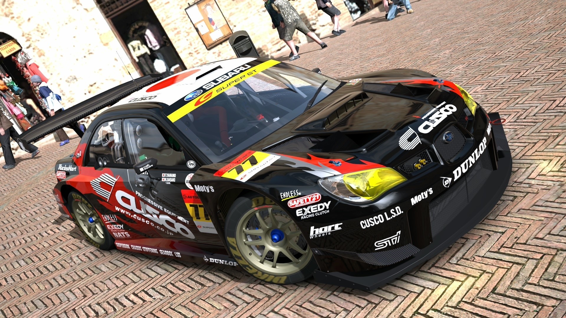 Macchina da corsa gialla sullo sfondo dell'anfiteatro nel gioco per computer gran turismoMacchina da corsa gialla sullo sfondo dell'anfiteatro nel gioco per computer gran turismo