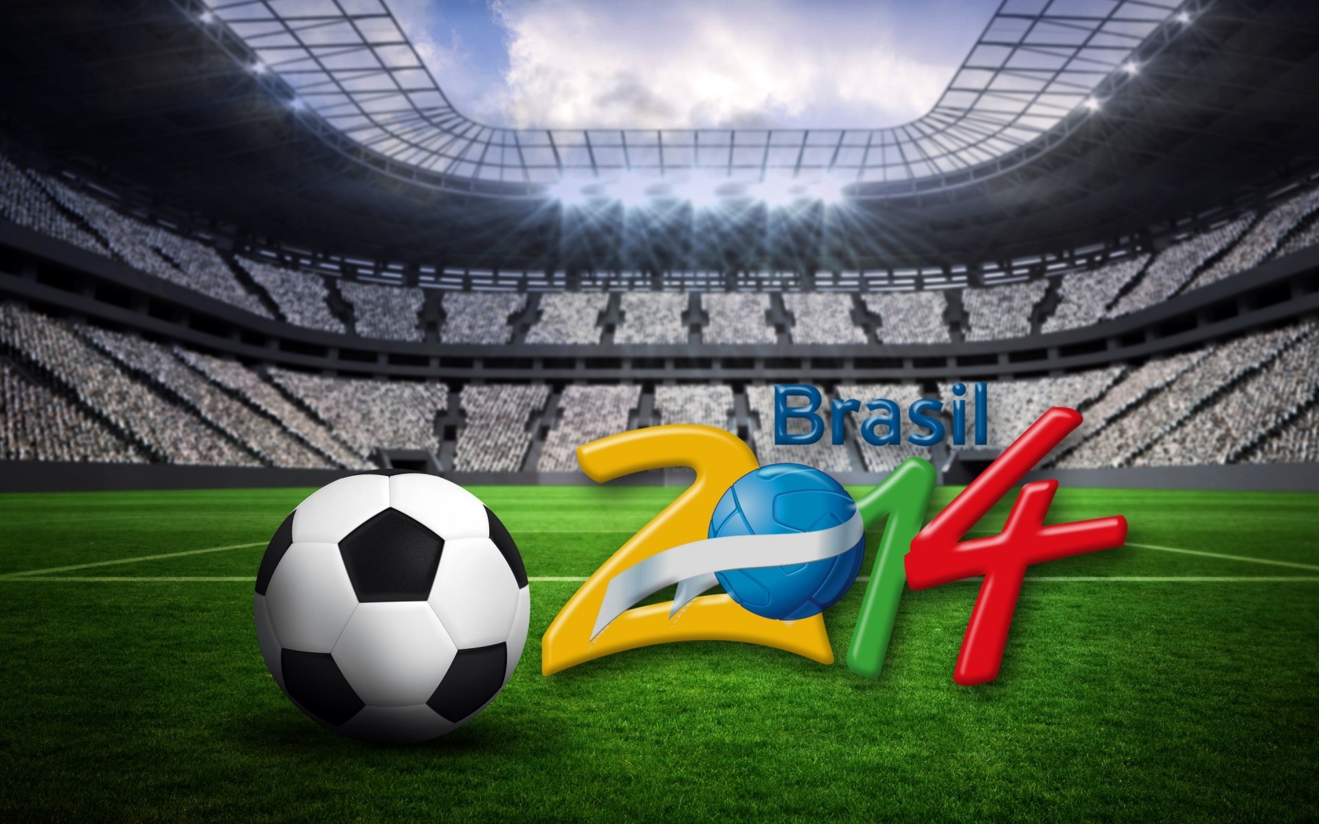 Simboli del campione del mondo di calcio sullo sfondo dello stadio
