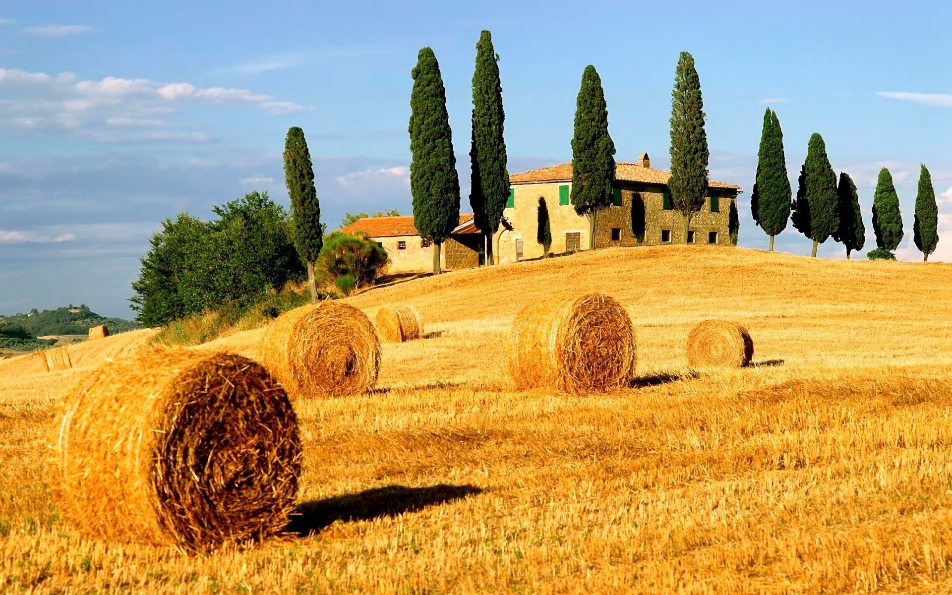 FATTORIA DIETRO UN CAMPO DI GRANO