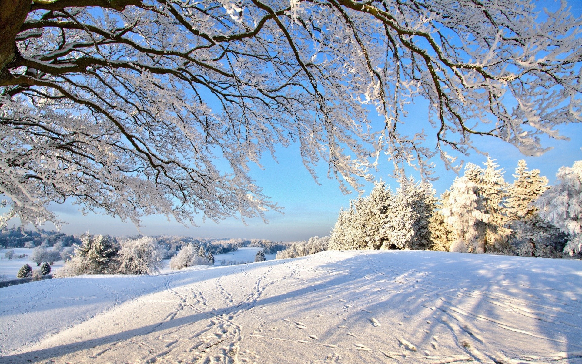 Tracce di animali sul campo di neve
