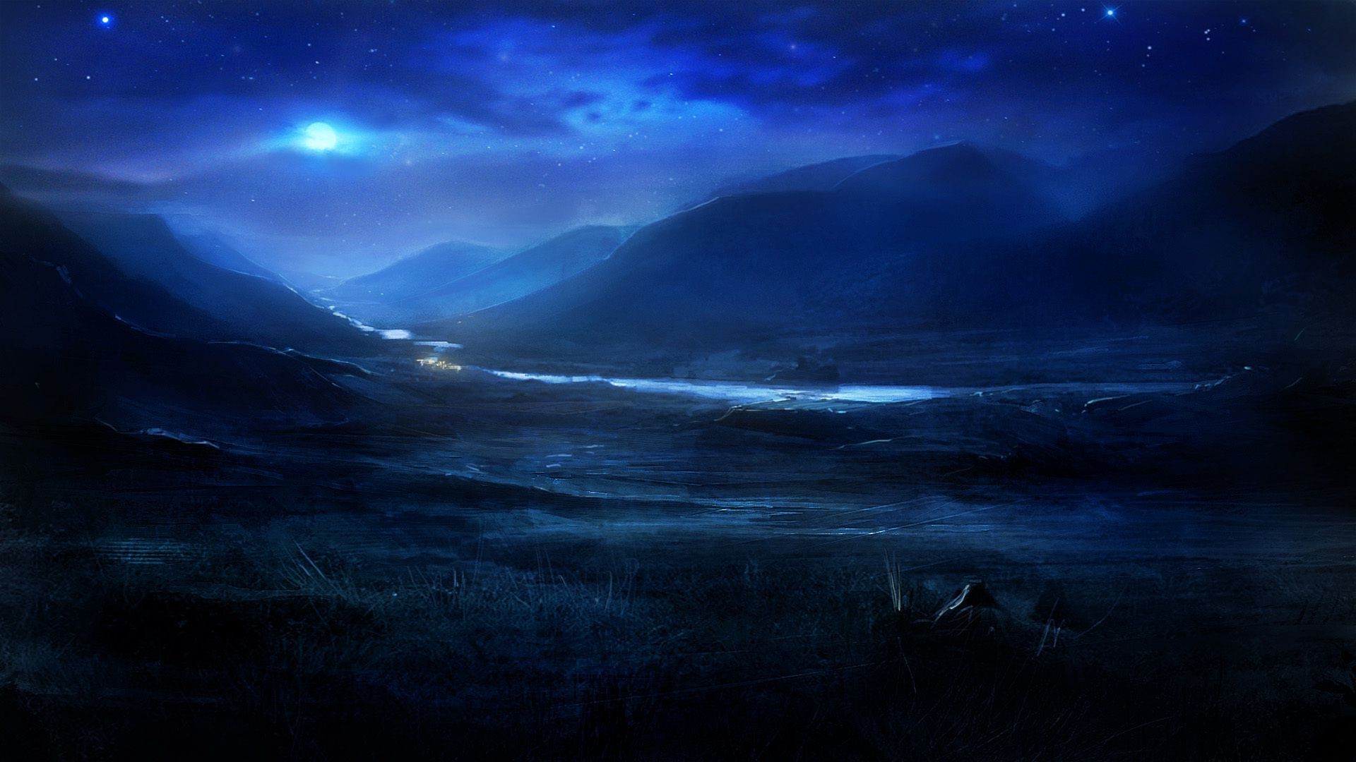 Paesaggio della natura. Campo, montagne, foresta e cielo