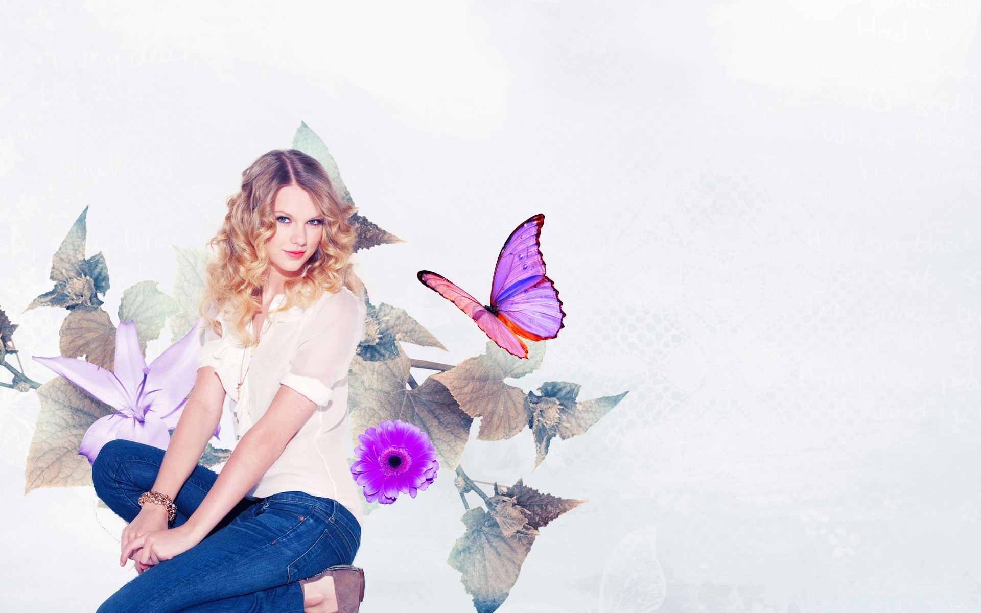 Ragazza con fiori e farfalle