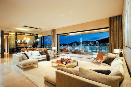 Soggiorno chic: bellissimi mobili, carta da parati fotografica
