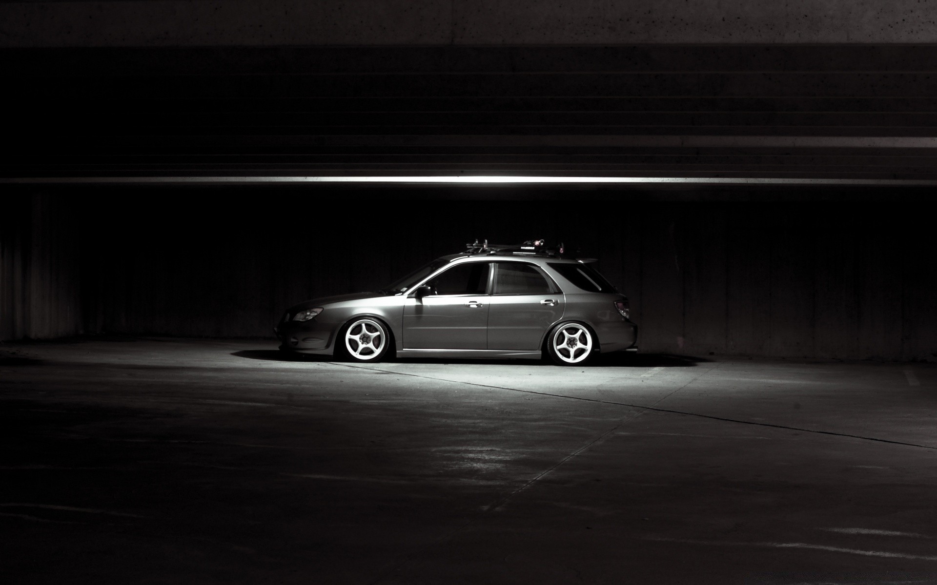 Auto nera sportiva nel parcheggio su uno sfondo di verdeAuto nera sportiva nel parcheggio su uno sfondo di verde