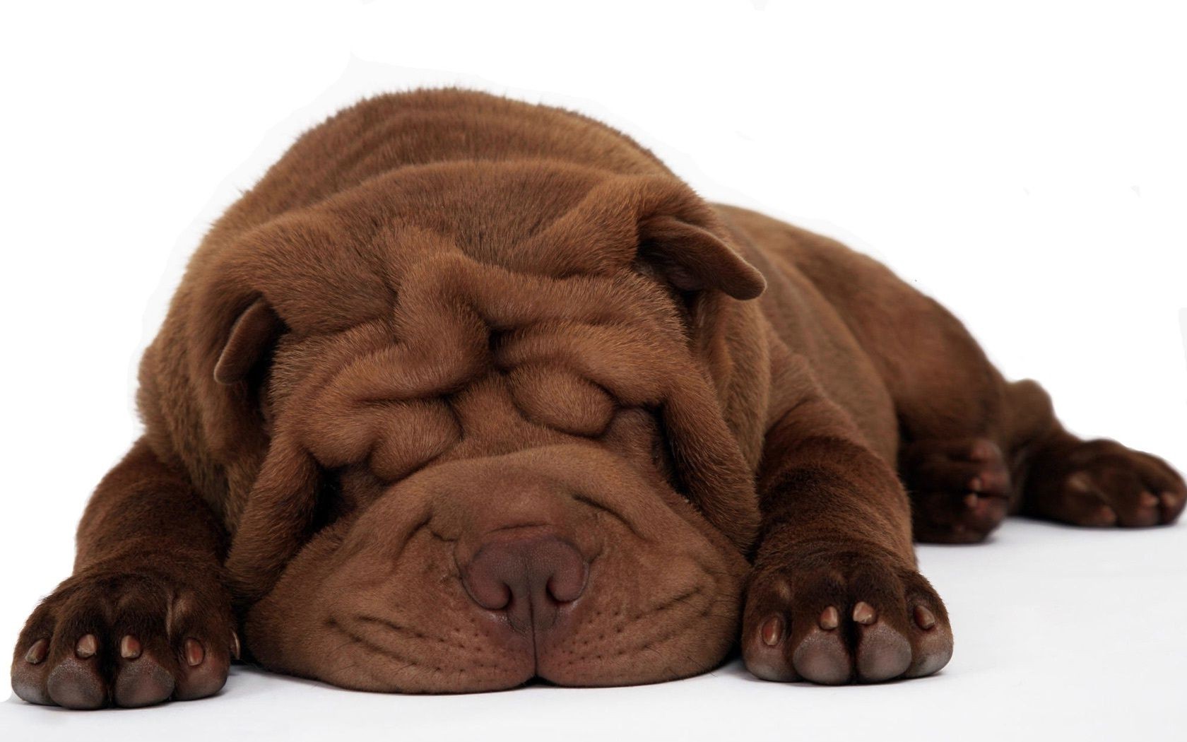 Cane di razza Shar Pei, colore marrone carino addormentato