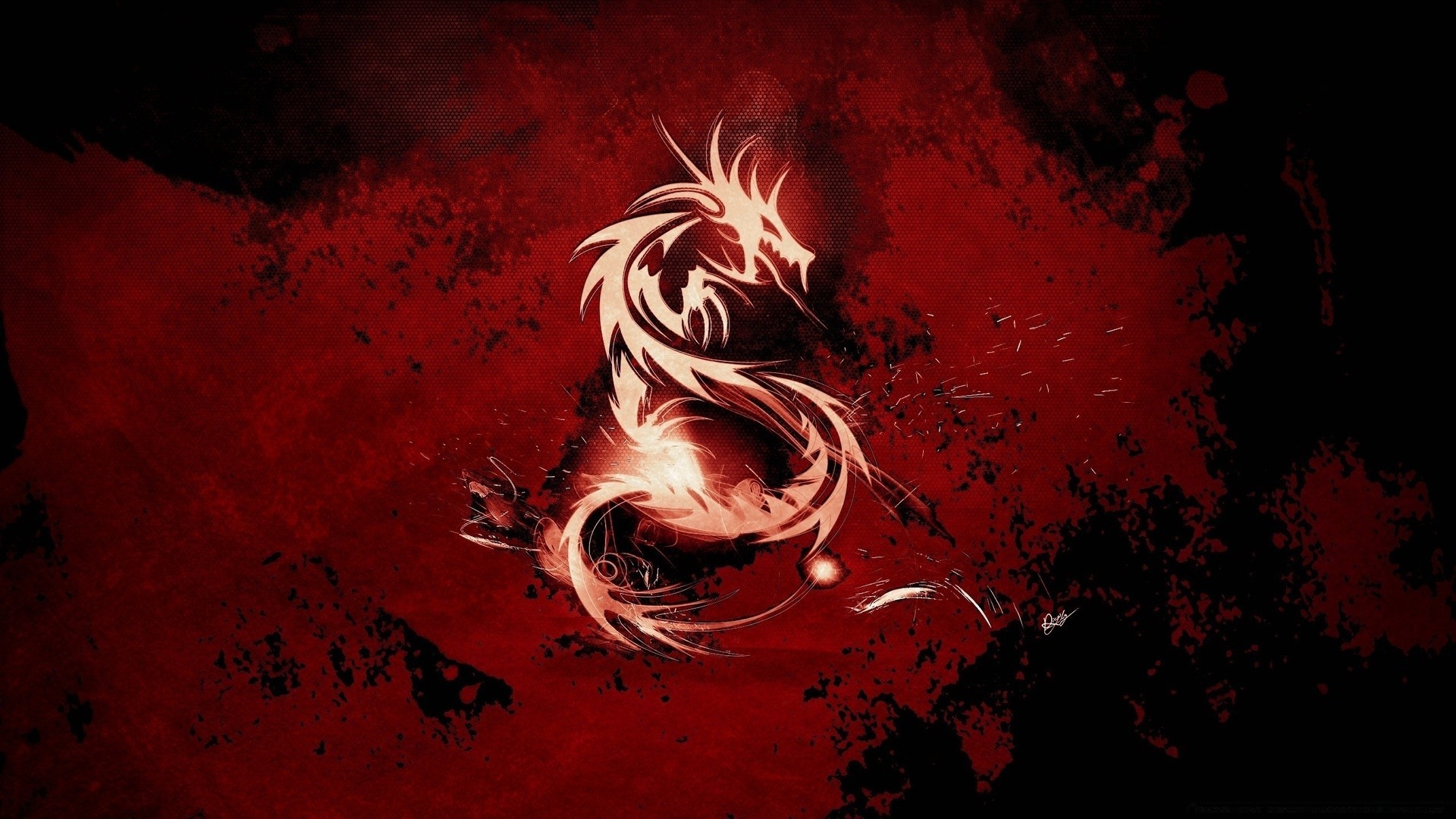 Drago di fuoco su sfondo rosso per carta da parati