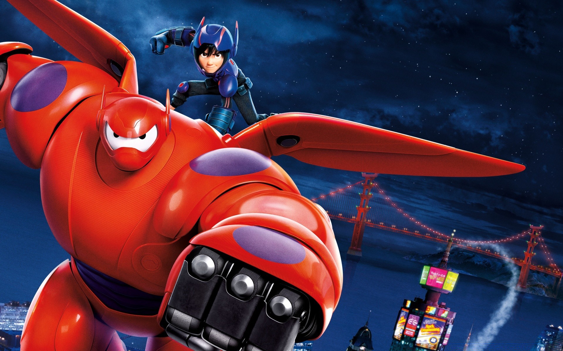 Cartone animato "città degli eroi" robot Baymax e Hiro Hamada