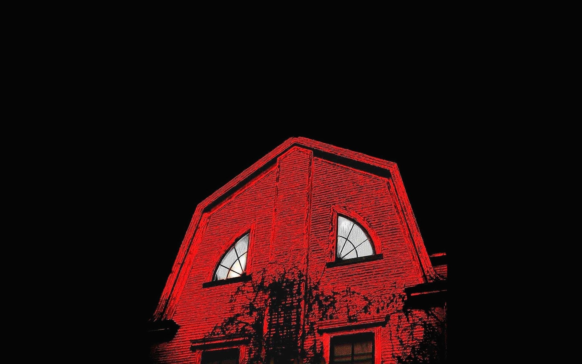 Casa Rossa architettonica su sfondo scuro