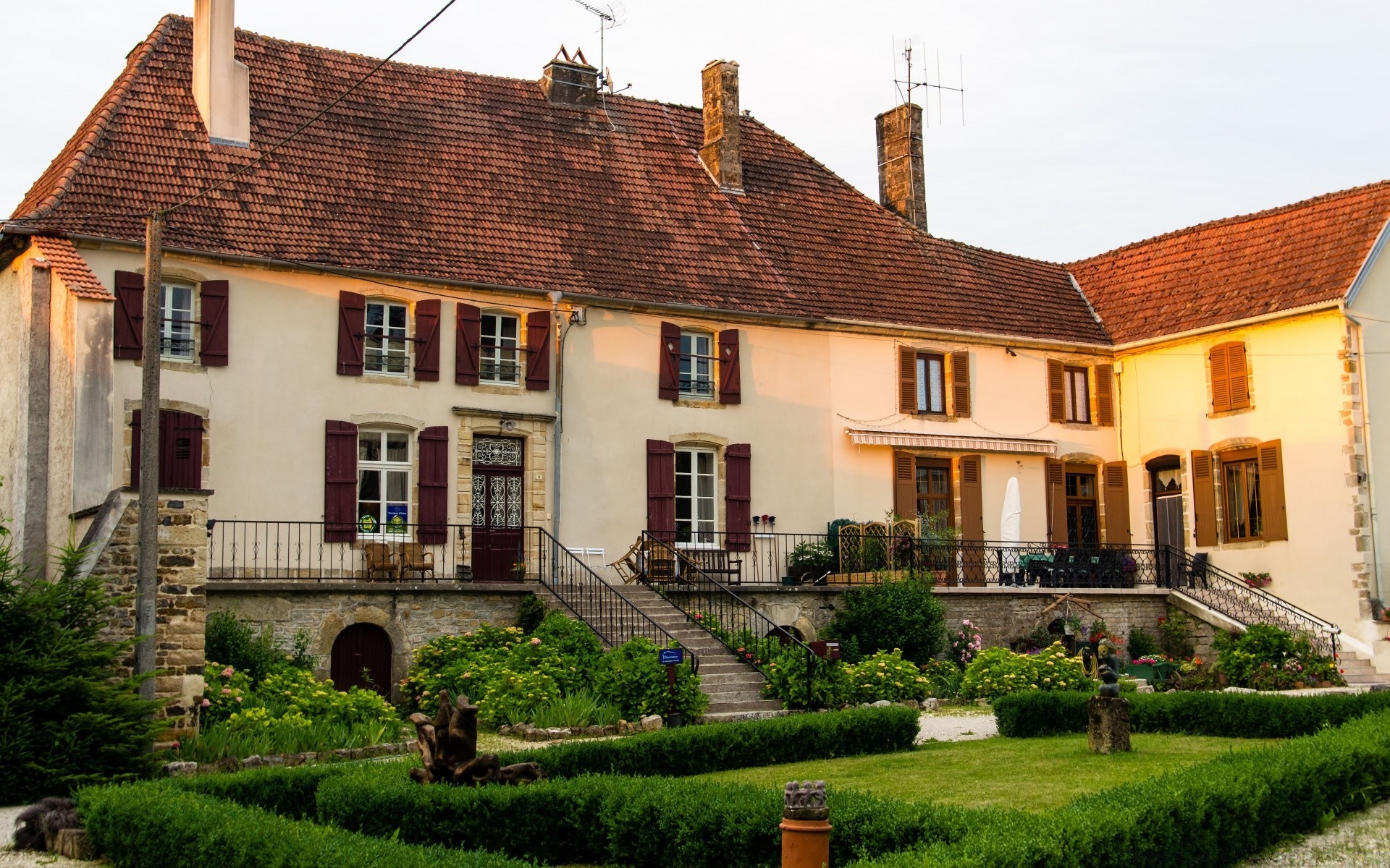 Casa europea a due piani con vegetazione