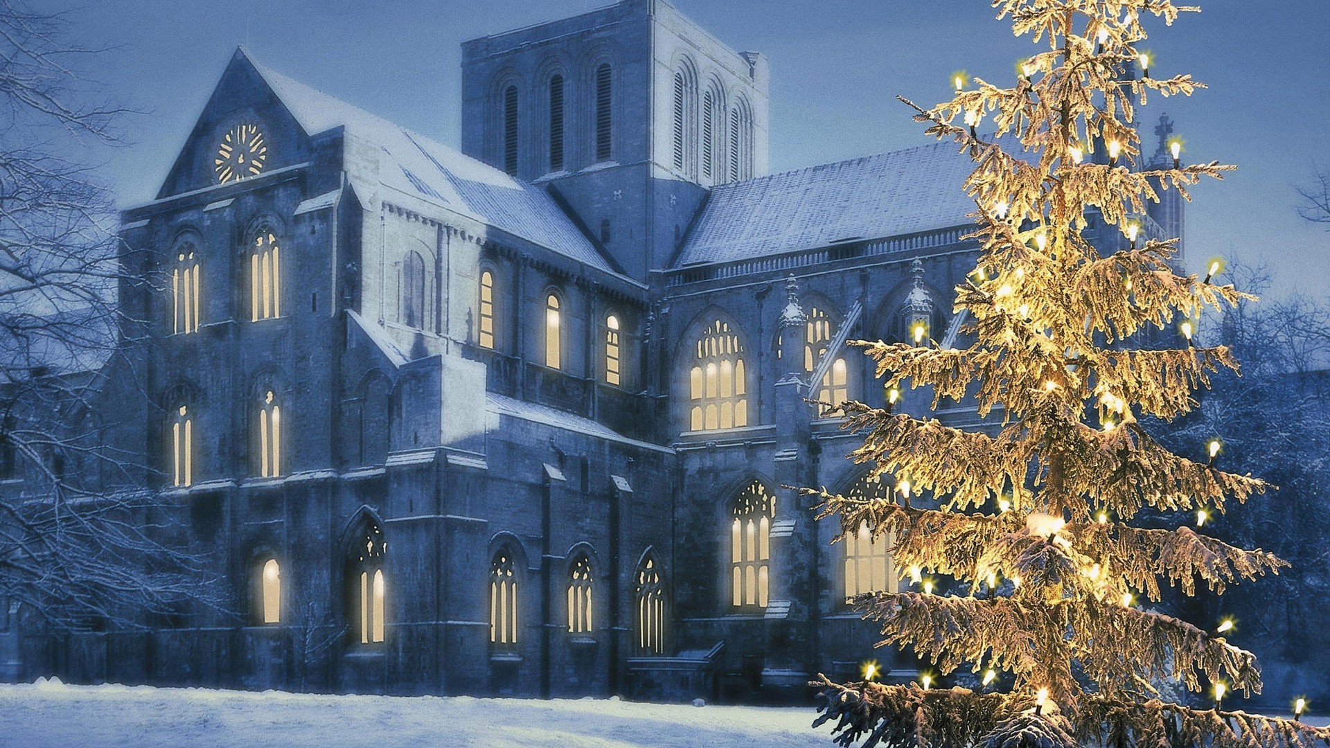 Vista serale della casa di Natale