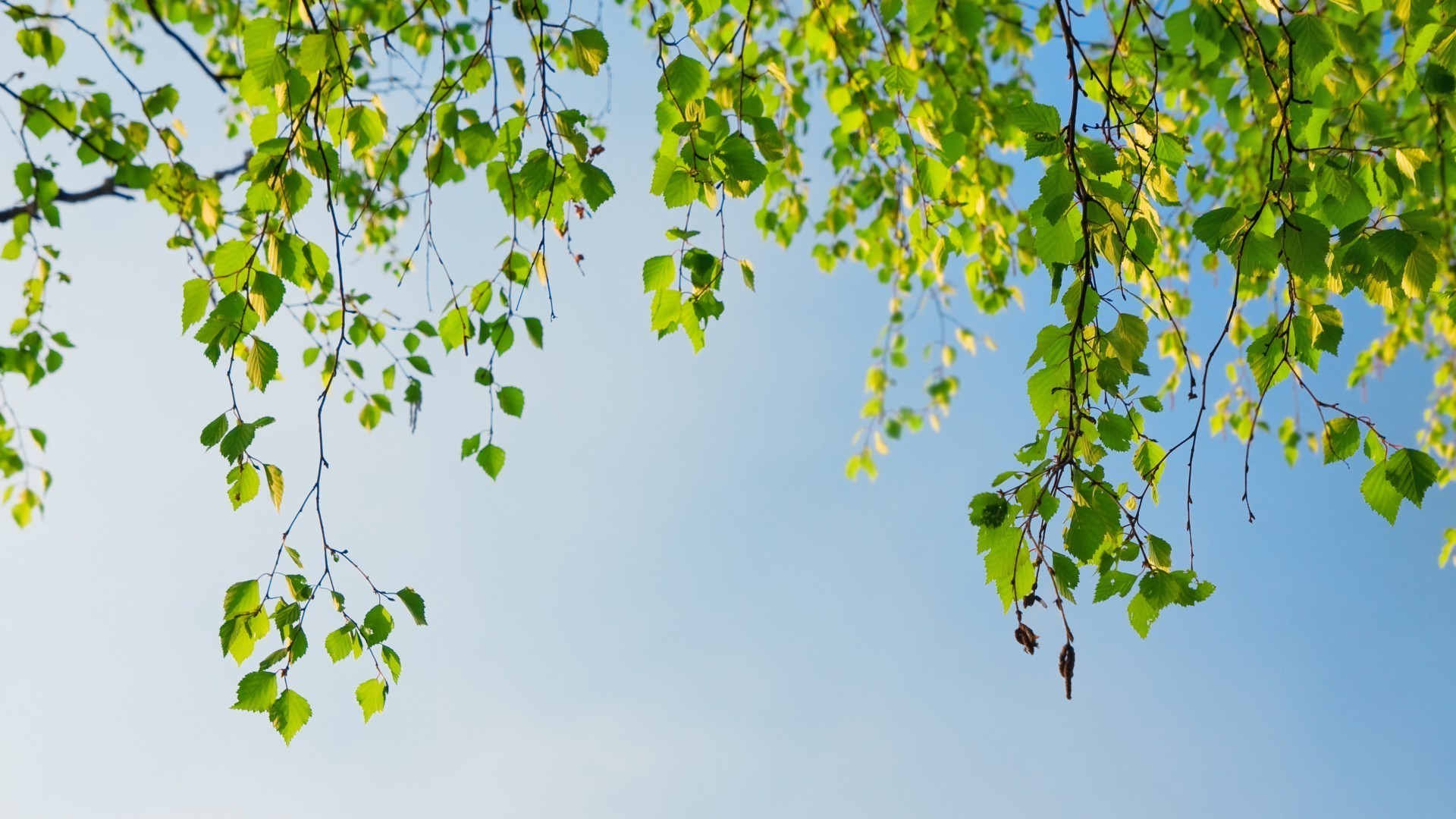 2 palline blu di Capodanno su nastri bianchi su sfondo blu con fiocchi di neve bianchi di diverse dimensioni