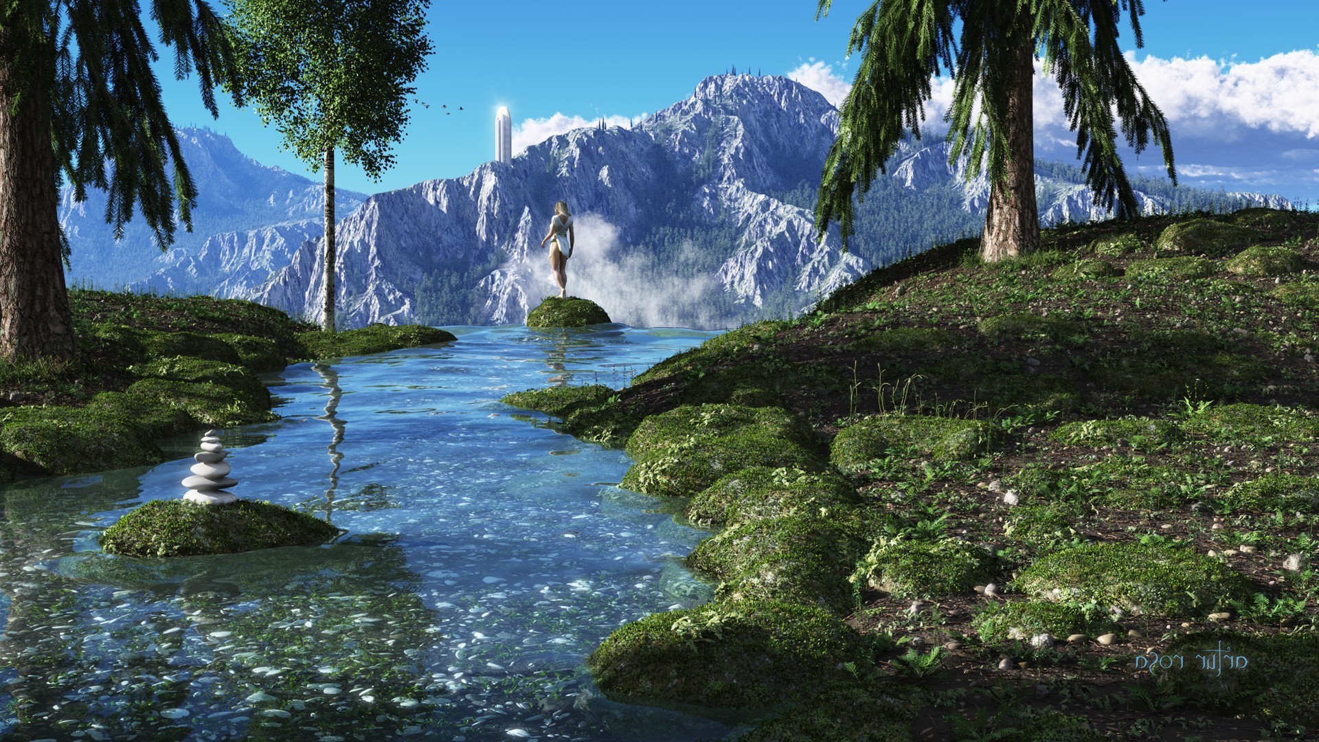 Vista del castello del cavaliere e della cascata dal pallone