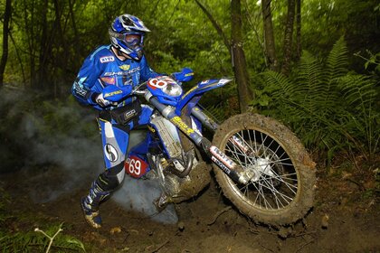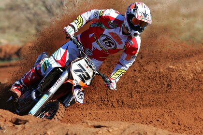 Un uomo su una moto da cross è decollato