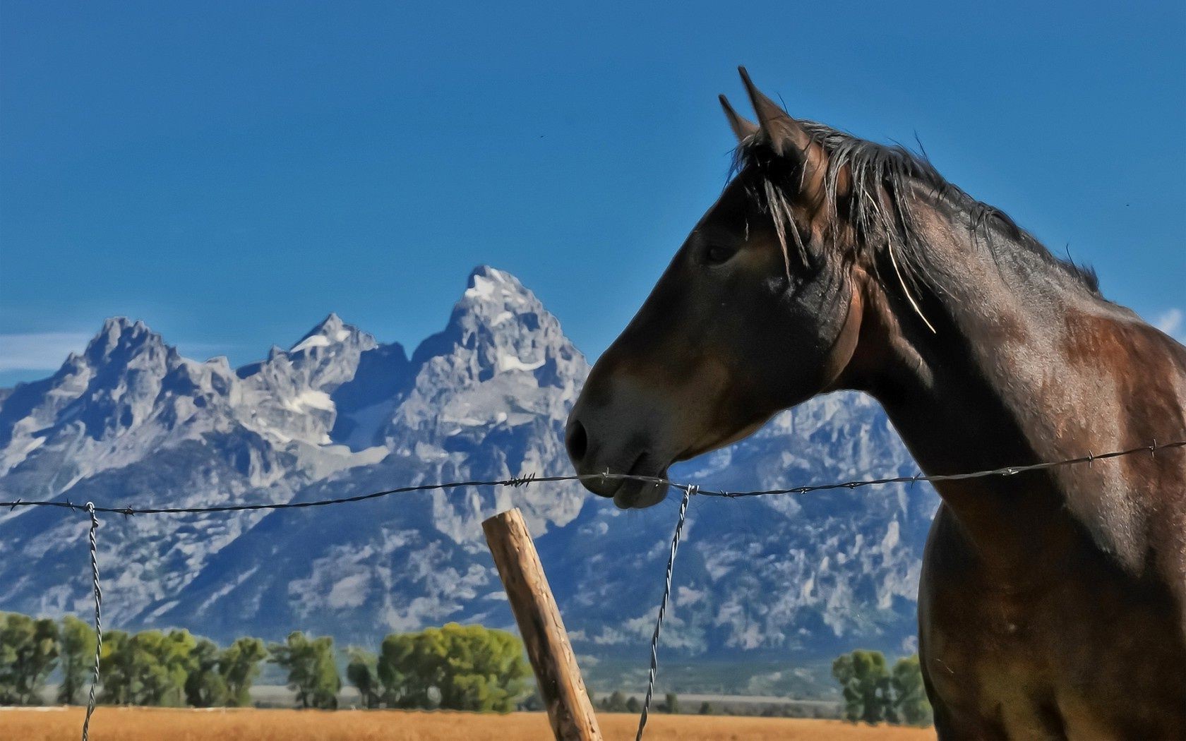 Cavallo su uno sfondo di rocce e cielo