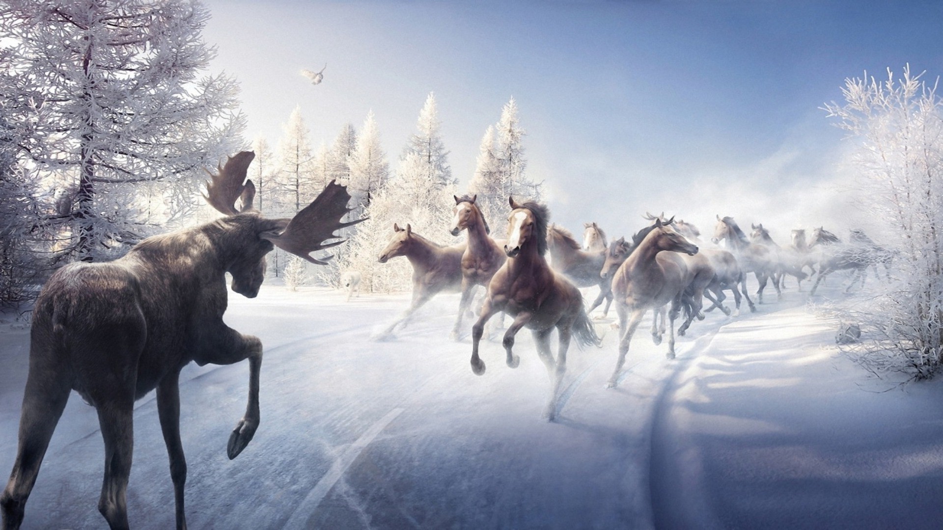 Foto di cavalli nel campo sullo sfondo delle montagne
