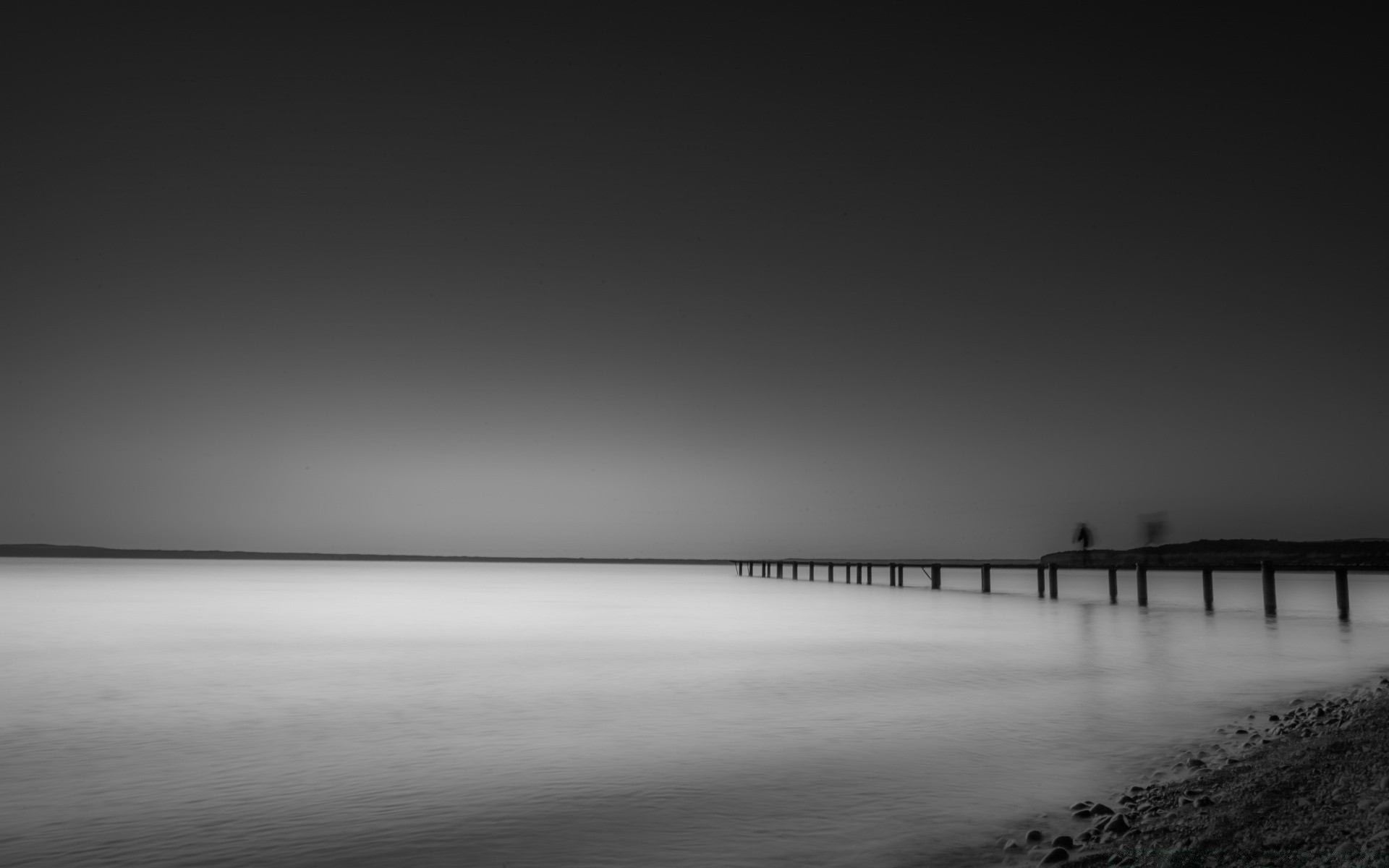 Tastiera in bianco e nero dello strumento con il riflesso dell'uomo
