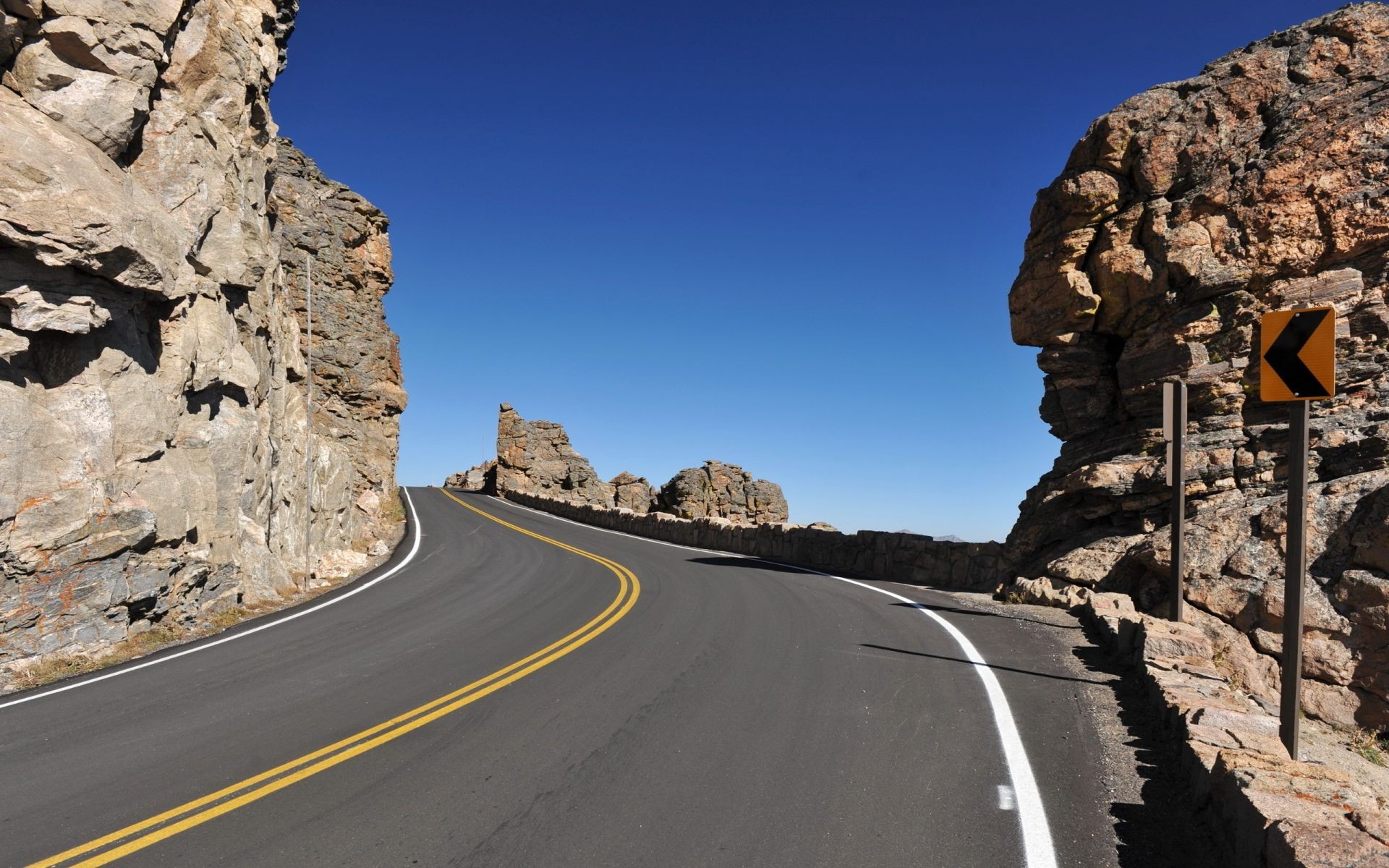 Autostrada di montagna. cielo blu, rocce, paesaggio montanoAutostrada di montagna. Cielo blu, rocce, paesaggio montano