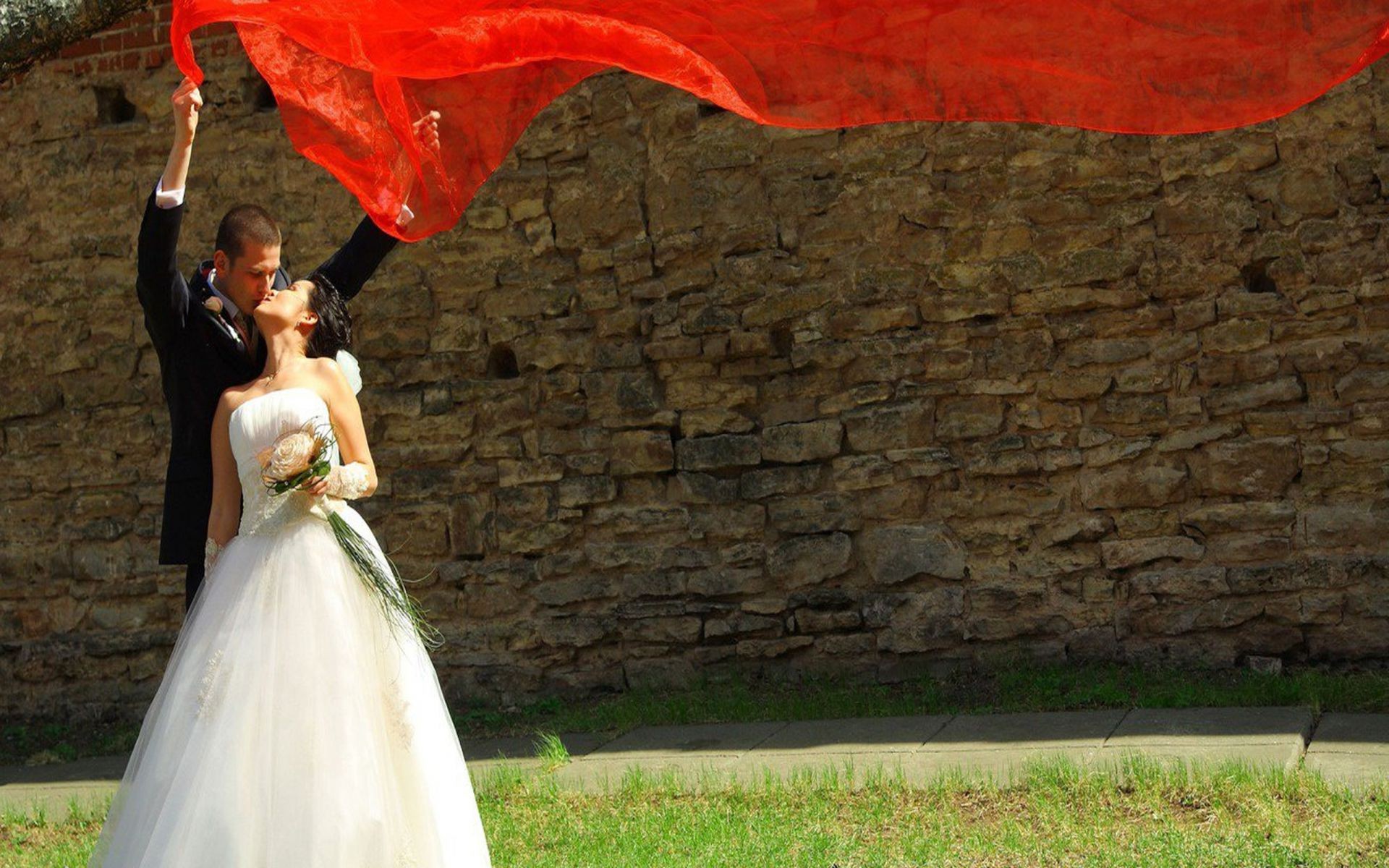 La sposa e lo sposo durante il servizio fotografico di nozze