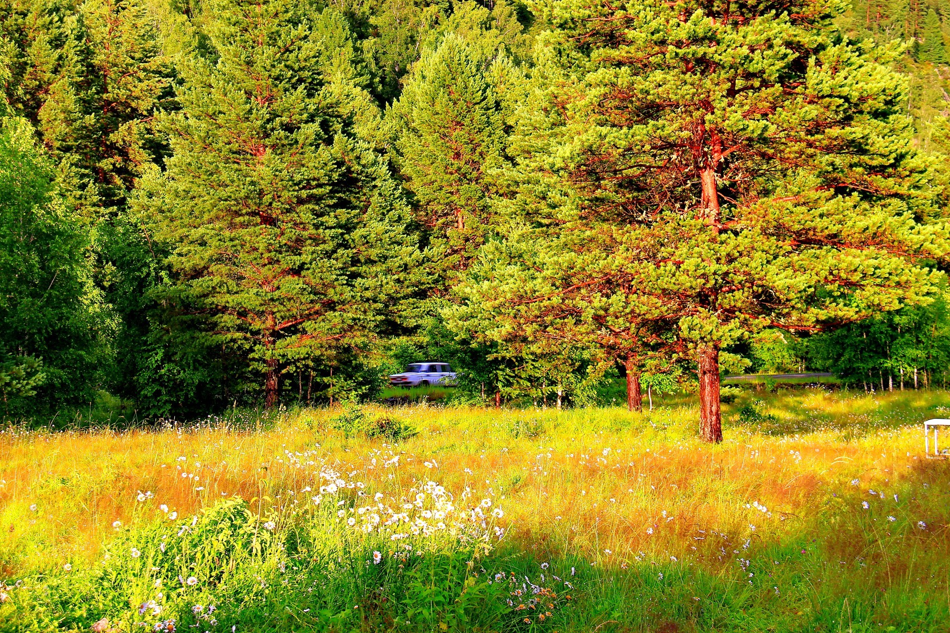 Paesaggio autunnale. Betulle con foglie gialle. Felci ingiallite