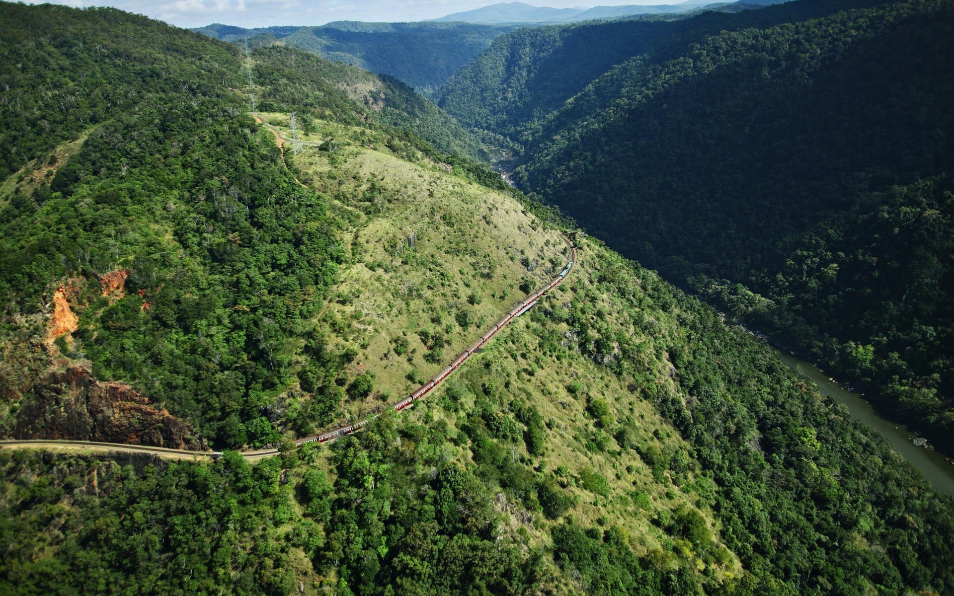 Una strada che corre lungo una spiaggia rocciosa sullo sfondo del tramonto