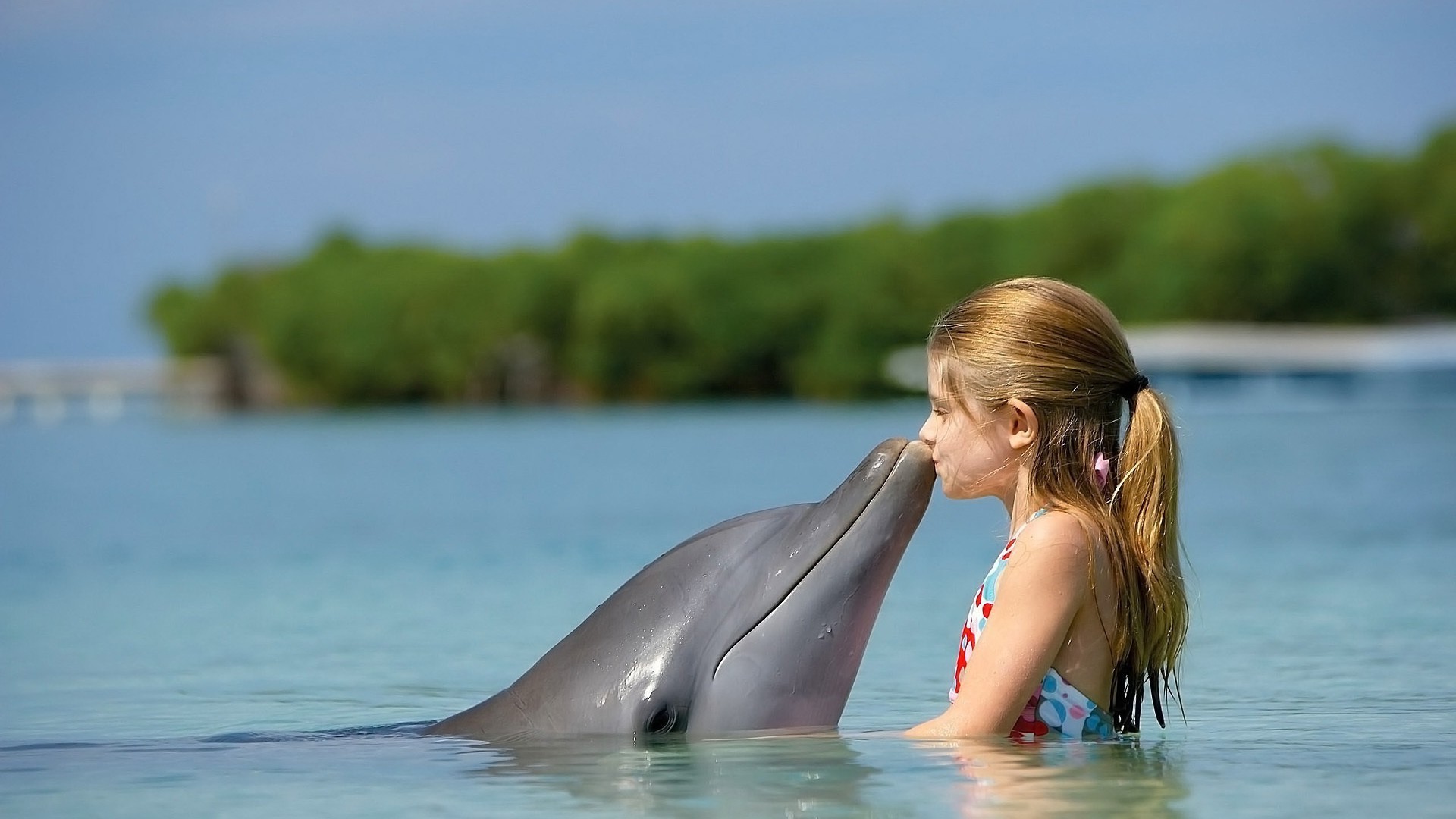 Ragazza con delfino. Estate. Natura