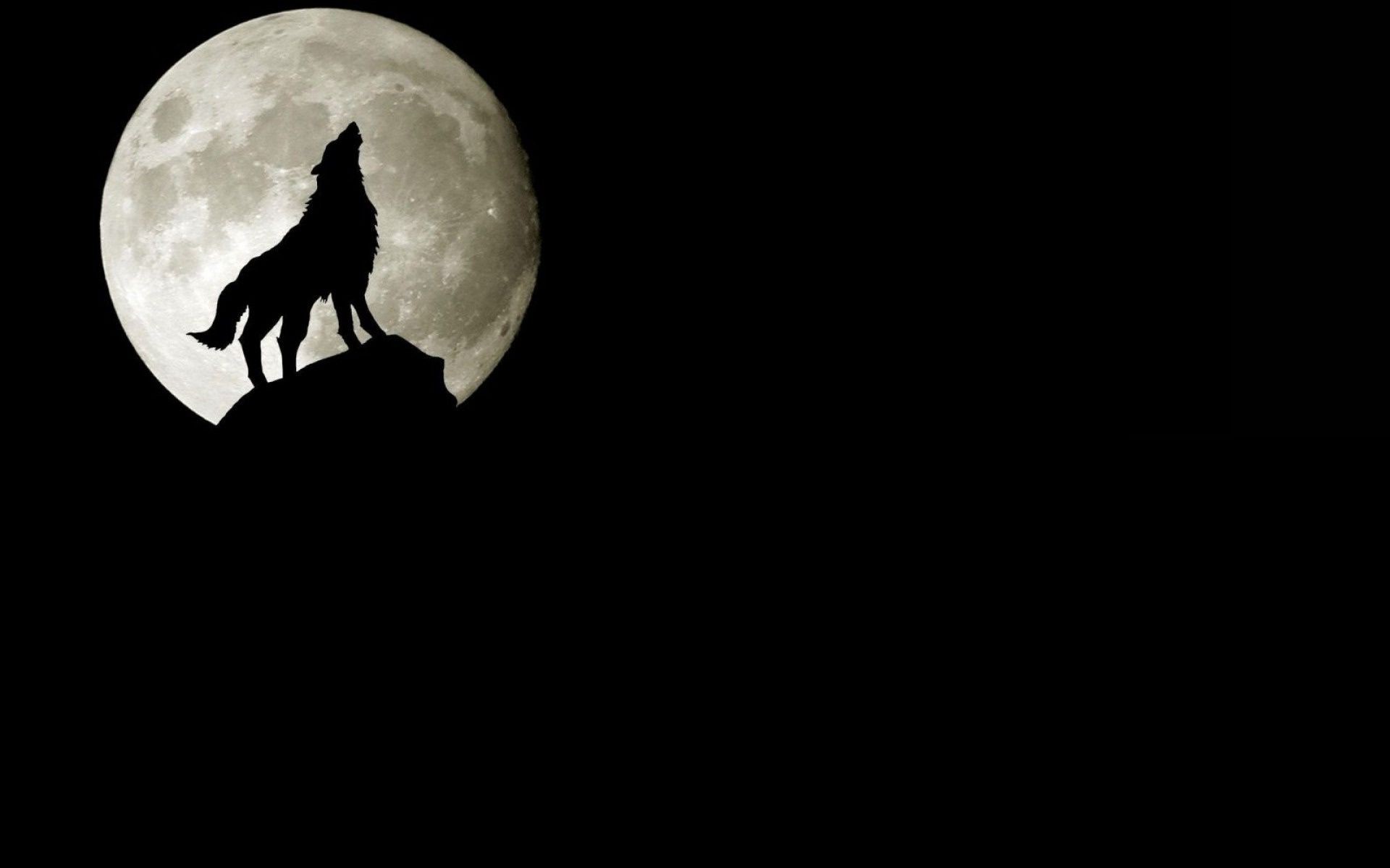 Ululato di un lupo solitario sullo sfondo della Luna