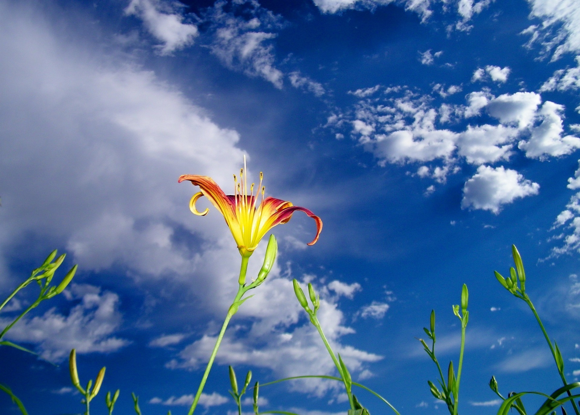 Fiore sullo sfondo di un cielo blu trascinato dalle nuvole