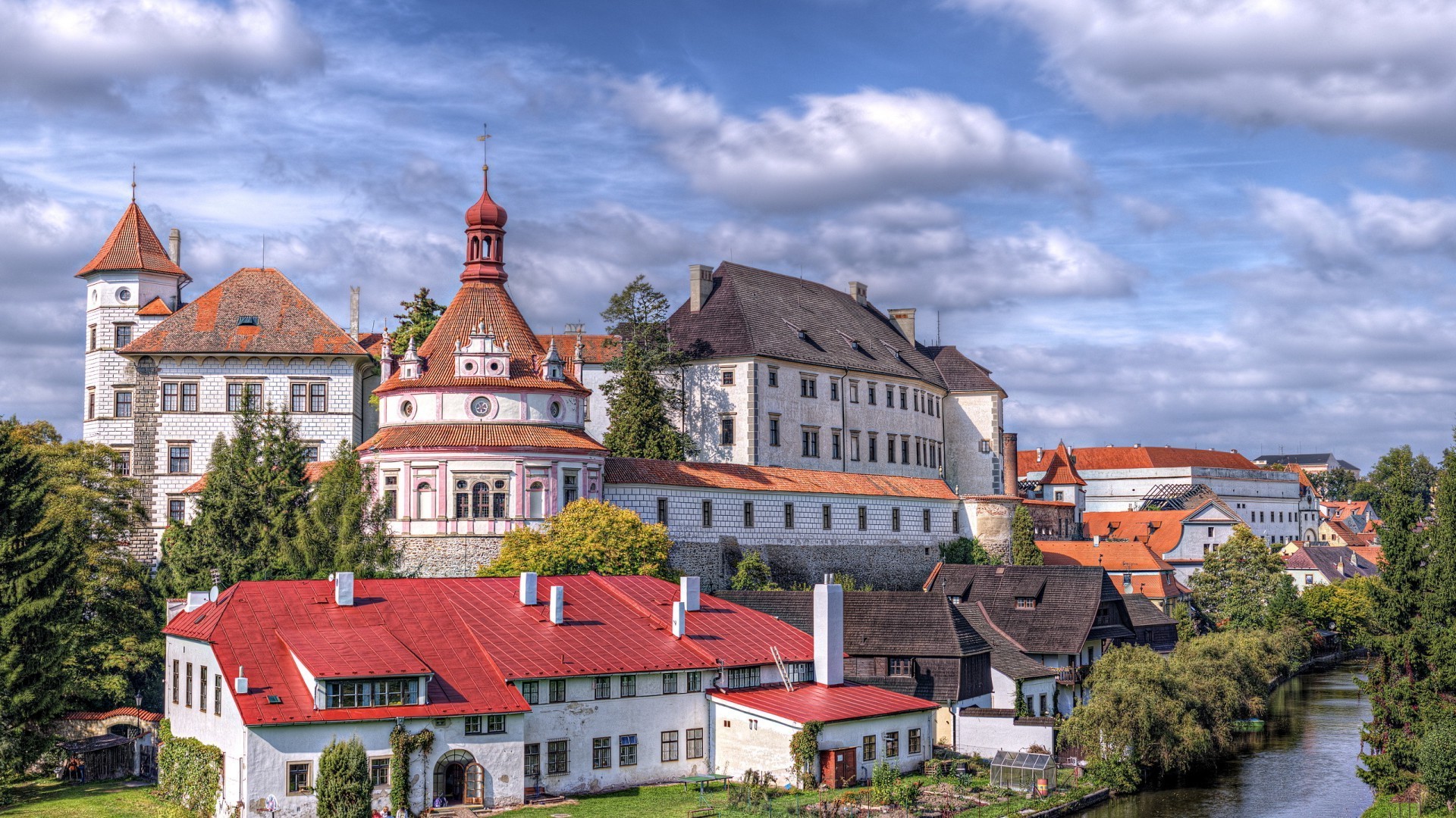 Maestoso castello sullo sfondo di un cielo nuvoloso