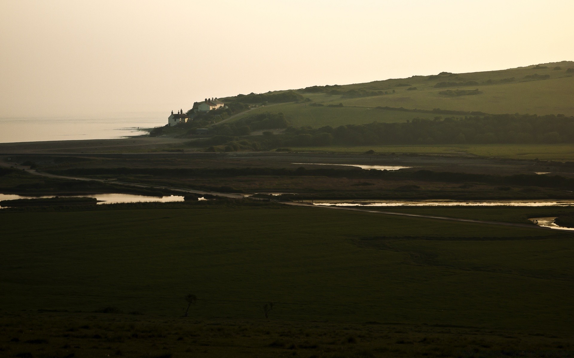 Paesaggio acquatico al tramonto