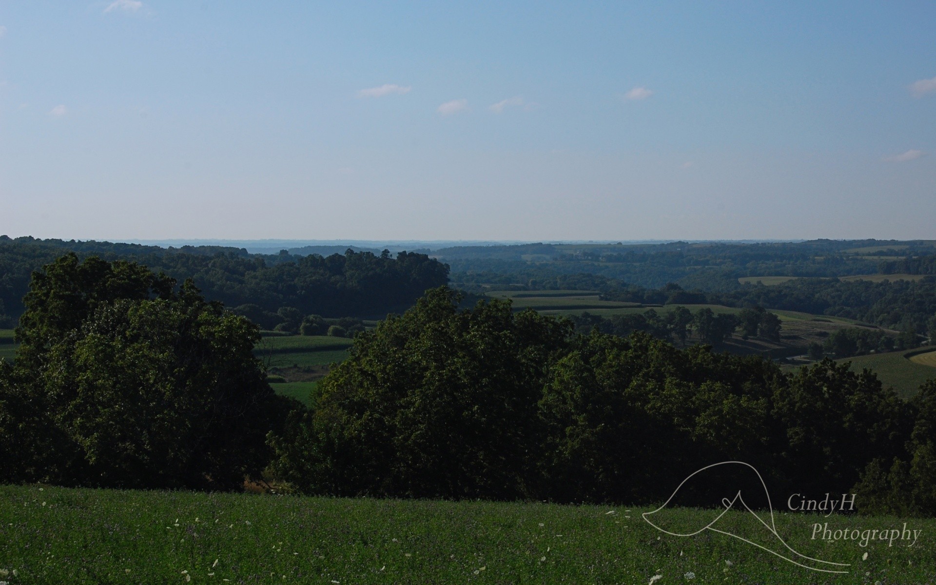 La foresta decidua lascia il posto a un campo arato e continua in una serie di pratiLa foresta decidua lascia il posto a un campo arato e continua in una serie di prati