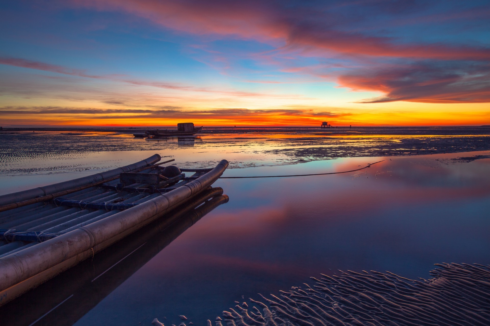 Molo vicino alla superficie piana del lago al tramonto