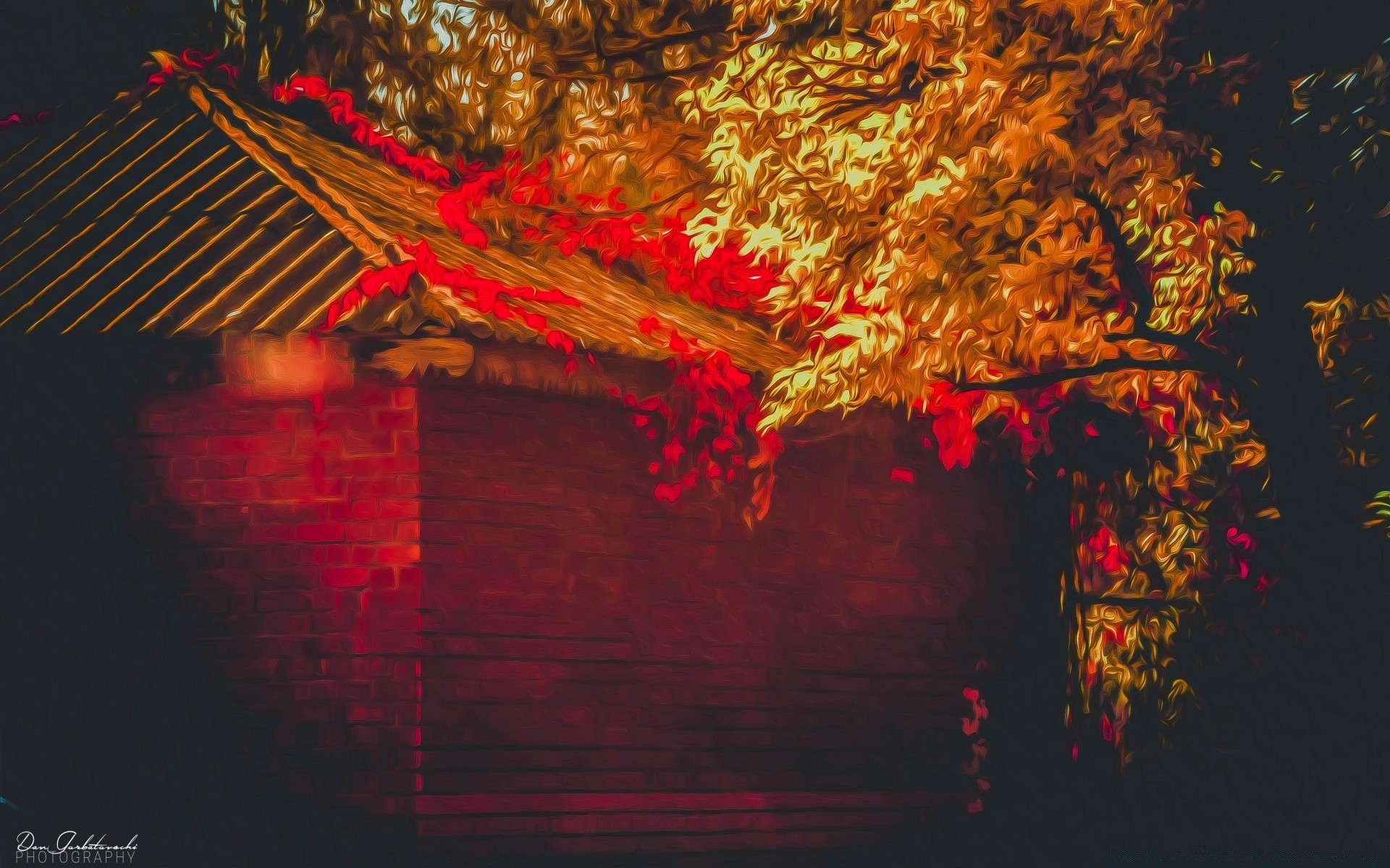 Disegno pittoresco di un albero vicino alla casa