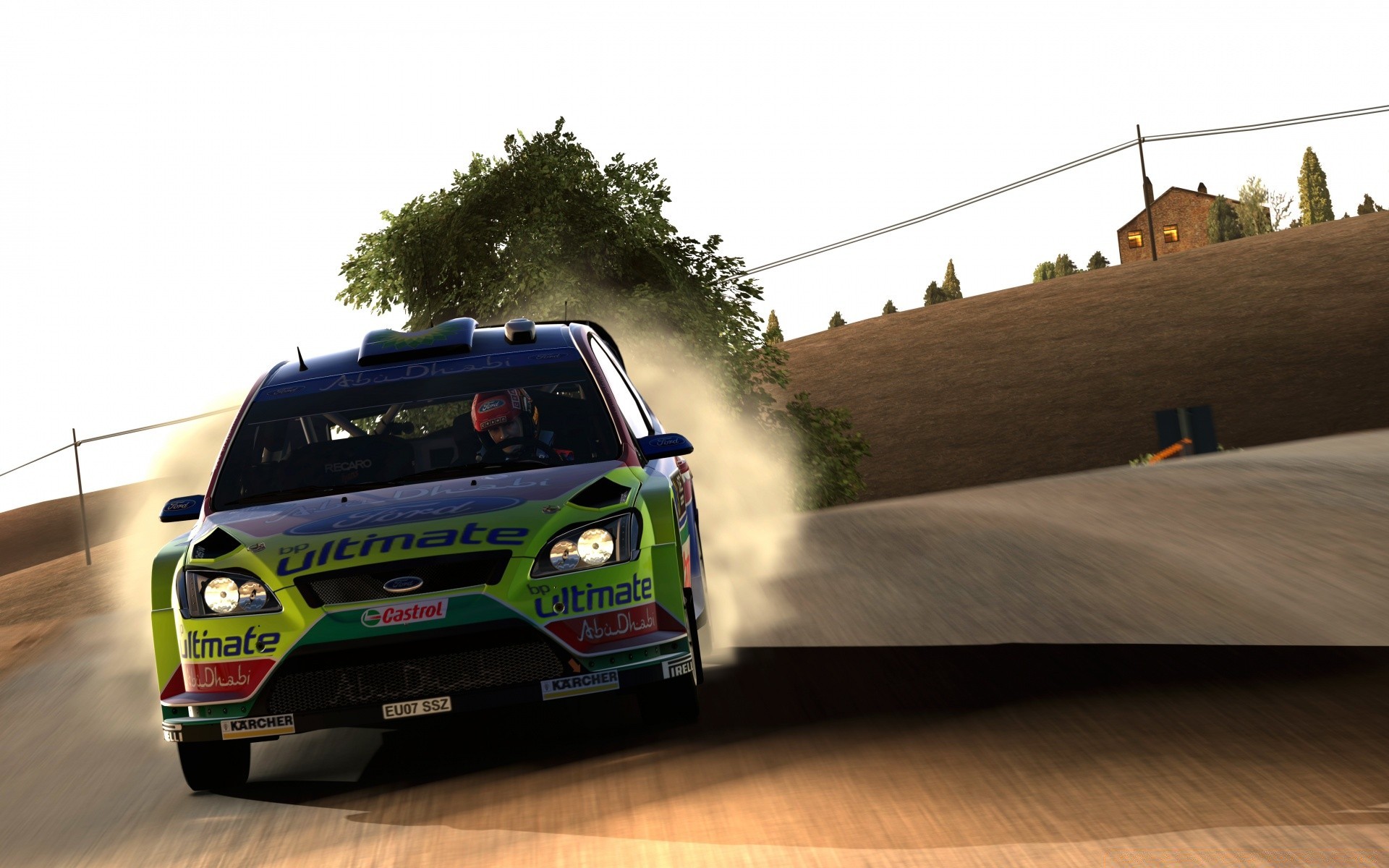 Auto Ford tecnologica rossa brillante su uno sfondo di nuvole