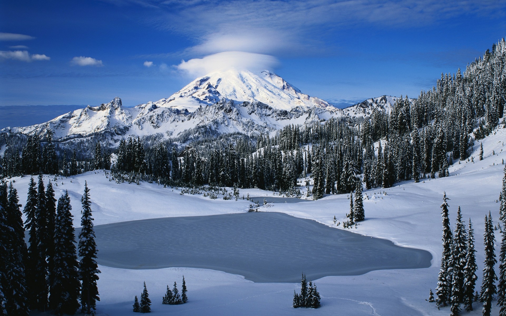 Picco di montagna nella stagione invernale. Picco di montagna innevato nel cielo azzurro