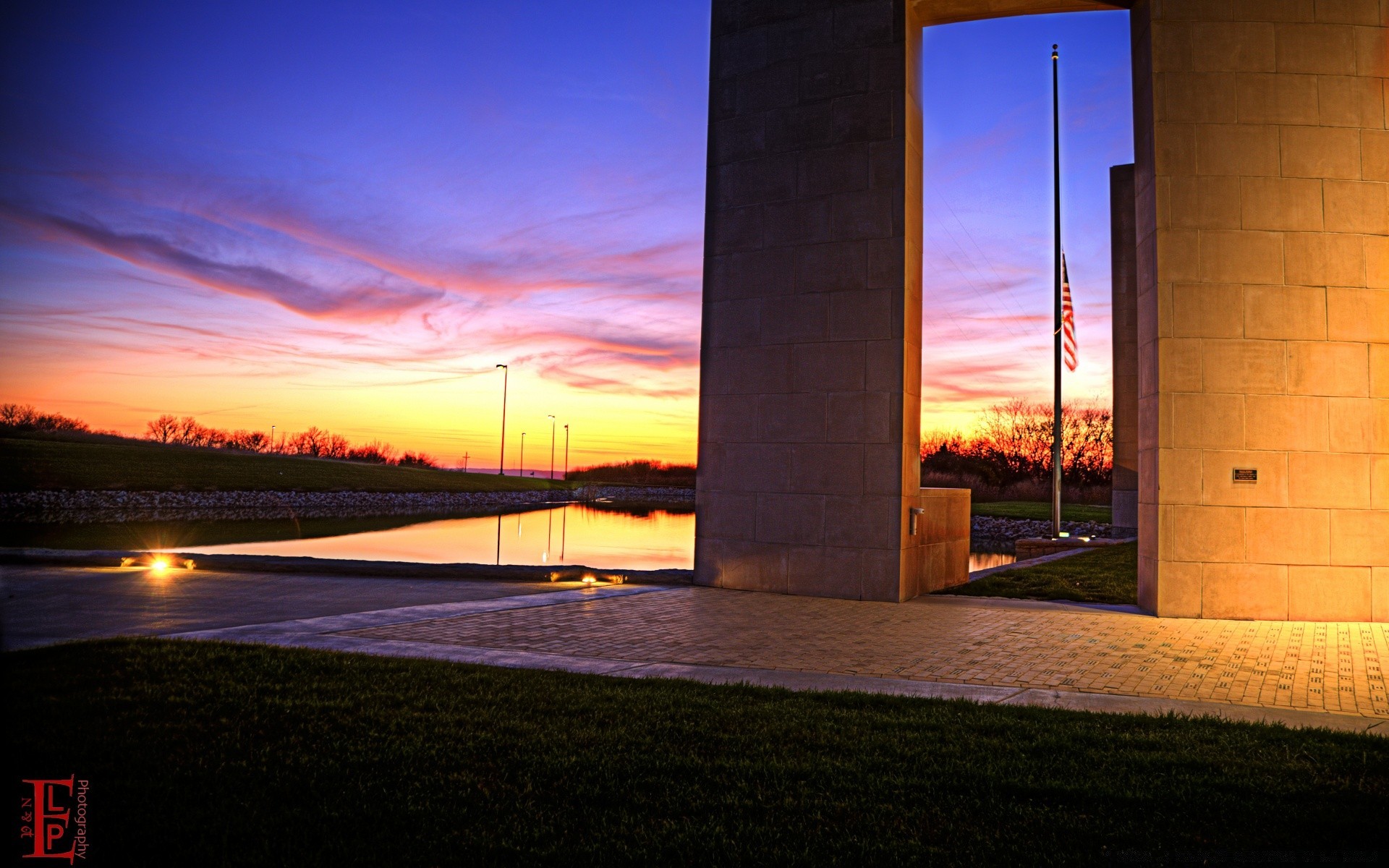 Ponte in America che taglia le acque sullo sfondo del tramonto