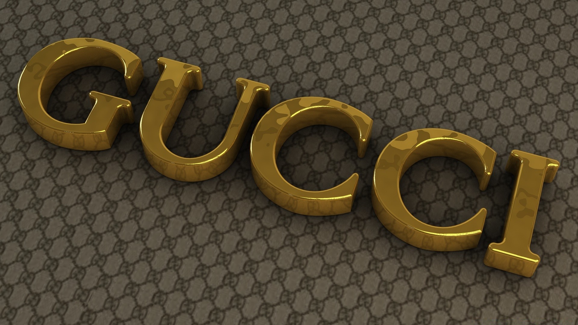 Marchio Gucci lettere d'oro voluminose