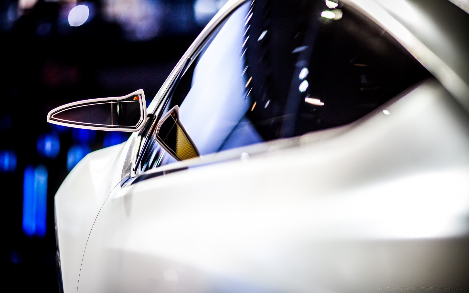 Immagine della porta e dello specchietto retrovisore dell'auto bianca