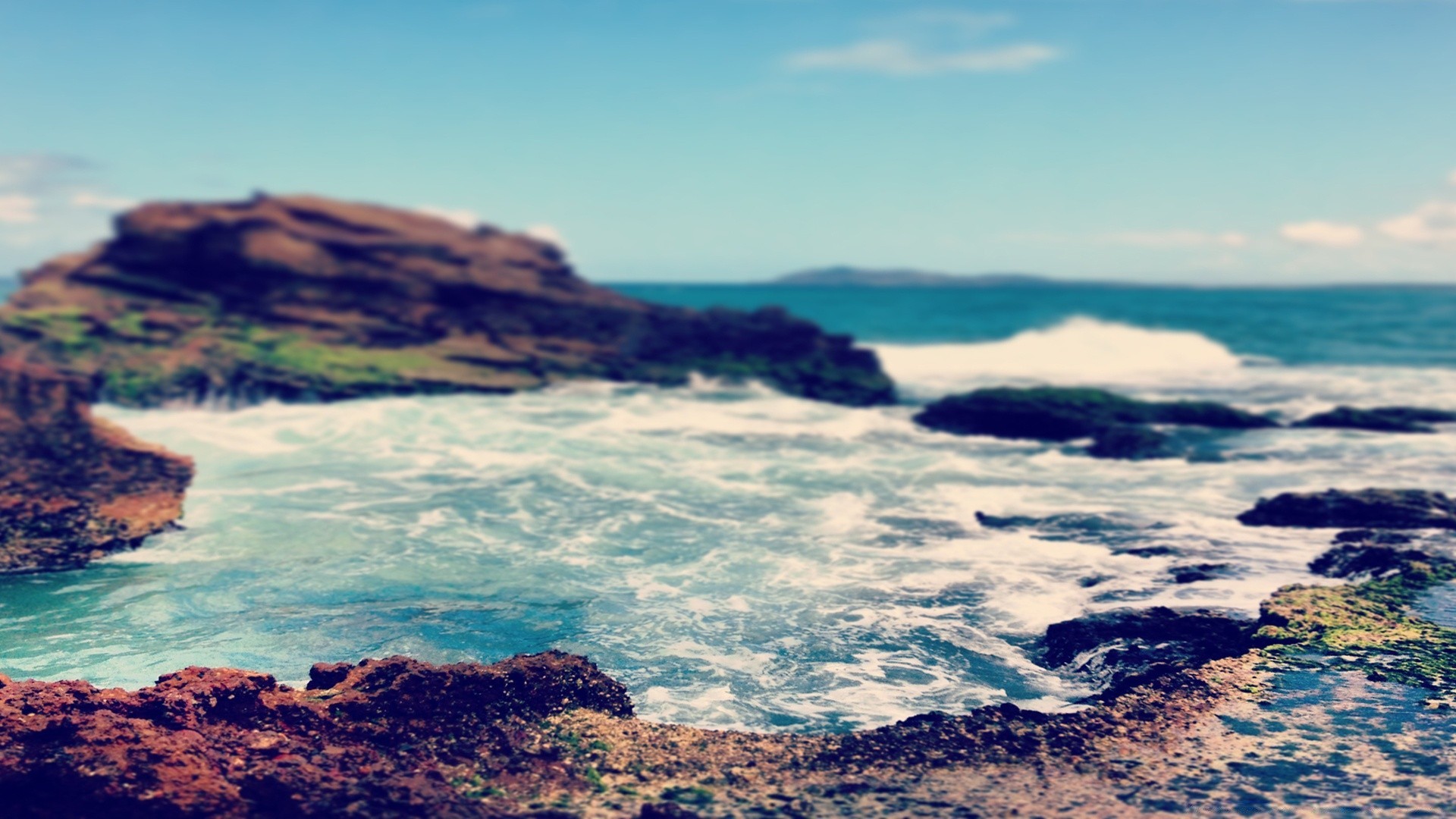 Calma acqua di mare vicino alla costa rocciosa sotto il cielo blu