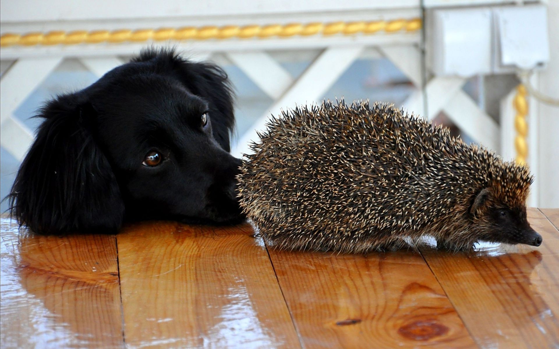 Fedeltà canina. Due cani giacciono in un abbraccio con la testa piegata P